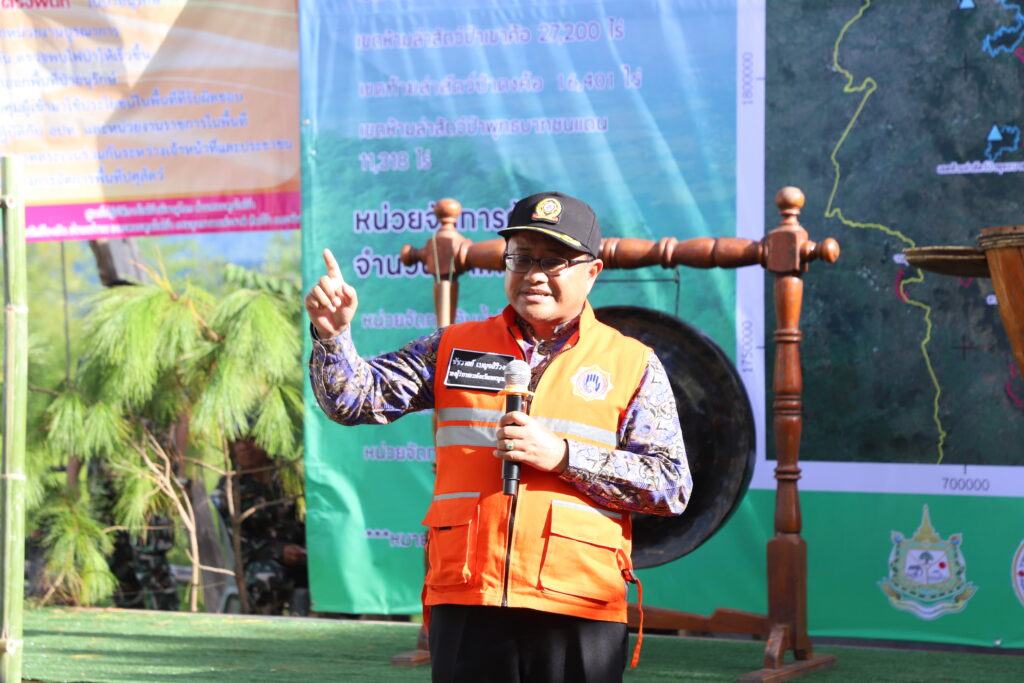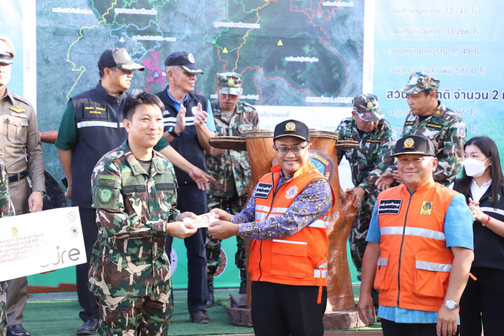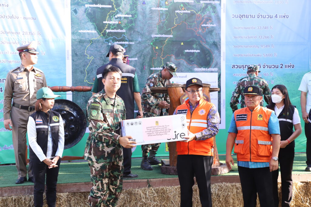 โดยกิจกรรมในวันนี้ นายชัชวาลย์ เบญจสิริวงศ์ รองผู้ว่าราชการจังหวัดเพชรบูรณ์ ได้มอบหน้ากาก Cure Air Sure และหน้ากาก N95 ให้แก่ตัวแทนเจ้าหน้าที่ป้องกันไฟป่า พร้อมเปิดกิจกรรม Kick off ดำเนินการป้องกันและแก้ไขปัญหาไฟป่า หมอกควัน และฝุ่นละอองขนาดเล็ก (PM2.5) โดยตรวจความพร้อมของเจ้าหน้าที่ เครื่องมือ และยานพาหนะ พร้อมปล่อยแถวทีมเจ้าหน้าที่ปฏิบัติงาน และยานพาหนะ และร่วมกันจัดทำแนวกันไฟป่า เพื่อแสดงให้เห็นถึงความพร้อมและความจริงจังในการแก้ไขปัญหาของจังหวัดเพชรบูรณ์ในการแก้ไขปัญหาไฟป่า หมอกควัน และฝุ่นละอองขนาดเล็ก (PM2.5) ตามนโยบายของรัฐบาลที่ให้ความสำคัญกับอากาศสะอาด