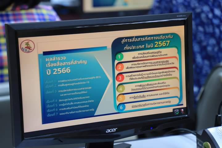 โดยที่ประชุมได้รับทราบ ประเด็นเรื่องสื่อสารที่สำคัญด้านในประเทศ ประจำปี 2567 จำนวน 6 เรื่องและประเด็นเรื่องสื่อสารที่สำคัญด้านต่างประเทศ ประจำปี 2567 จำนวน 4 เรื่อง และพิจารณาเกี่ยวกับการวิเคราะห์ประเด็นการสื่อสารที่สอดคล้องกับเรื่องสื่อสารสำคัญประจำปีงบประมาณ 2567 ทั้ง 10 เรื่อง และประเด็นประชาสัมพันธ์ในพื้นที่รวมถึงช่องทางการประชาสัมพันธ์ที่ใช้ในการขับเคลื่อนยุทธศาสตร์ด้านการประชาสัมพันธ์จังหวัดลพบุรี