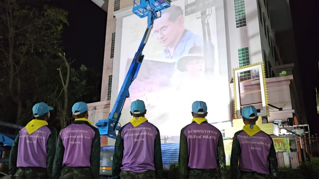 ที่ บริเวณด้านหน้า โรงเรียนเมืองใหม่ ชลอราษฎร์รังสฤษฎ์ ถนนพหลโยธิน ต.ทะเลชุบศร อ.เมืองลพบุรี จ.ลพบุรี กรมทหารราบที่ 31 รักษาพระองค์ จัดกำลังพลจิตอาสาพระราชทาน เราทำความดีด้วยหัวใจ จาก กองพันทหารราบที่ 1 กรมทหารราบที่ 31 รักษาพระองค์ ( ร. 31 พัน 1 รอ.) ให้การสนับสนุนการทำงาน ให้กับ กลุ่มศิลปินโครงการสตรีทอาร์ตคิงภูมิพล (Street Art King Bhumibol) ทั้งกล่างวันและกลางคืน ในการจัดเตรียม พื้นที่ และทำความสะอาดสถานที่ สำหรับการดำเนินกิจกรรม โครงการสตรีทอาร์ตคิงภูมิพล ครั้งที่ 20 ในระหว่างวันที่ 1-5 ธันวาคม 2566 ณ จังหวัดลพบุรี โดยร่วมกัน วาดพระบรมสาทิสลักษณ์ของพระบาทสมเด็จพระบรมชนกาธิเบศร มหาภูมิพลอดุลยเดชมหาราช บรมนาถบพิตร และพระบาทสมเด็จพระวชิรเกล้าเจ้าอยู่หัว รวมถึง พระบรมราชานุสาวรีย์สมเด็จพระนาราย์มหาราช เพื่อเผยแพร่ความเป็นมาระหว่างสถาบันพระมหากษัตริย์ กับความผูกพัน ที่ทรงมีต่อพสกนิกรภายในจังหวัดลพบุรี ด้วยการน้อยนำพระราชดำรัส พระราชกรณียกิจ เพื่อส่งต่อความรู้ประวัติศาสตร์ชาติไทย และพระมหากรุณาธิคุณ ของสถาบันพระมหากษัตริย์ไทย อันจะก่อให้เกิดการมีส่วนร่วมให้ประชาชนในจังหวัดลพบุรี สร้างสรรค์งานศิลปะที่เกิดประโยชน์ต่อทัศนียภาพ ผ่านผลงานสตรีทอาร์ตขนาดใหญ่ บนผนังกำแพงตึก ซึ่งมีความสูงราว 15 เมตร ของอาคารเรียน โรงเรียนเมืองใหม่ ชลอราษฎร์รังสฤษฎ์ ซึ่งอยู่ติดกับวงเวียนสมเด็จพระนารายณ์มหาราช เพื่อให้ผู้ที่สัญจรผ่านไปมา ได้ชื่นชมพระบารมี และ ร่วมกันเจริญตามรอยเบื้องพระยุคลบาท และถือเป็นการเทิดพระเกียรติ และน้อมรำลึกในพระมหากรุณาธิคุณ พระบาทสมเด็จพระบรมชนกาธิเบศร มหาภูมิพลอดุลยเดชมหาราช บรมนาถบพิตร ที่ทรงมีต่อประชาชนชาวไทย เนื่องในวันคล้ายวันพระราชสมภพ วันชาติ และวันพ่อแห่งชาติ ตลอดจน เพื่อสานต่อให้เกิดผลงานศิลปะ อันเป็นมงคล ทั้ง 77 จังหวัดทั่วประเทศไทย ตามโครงการสตรีทอาร์ตคิงภูมิพล อีกด้วย