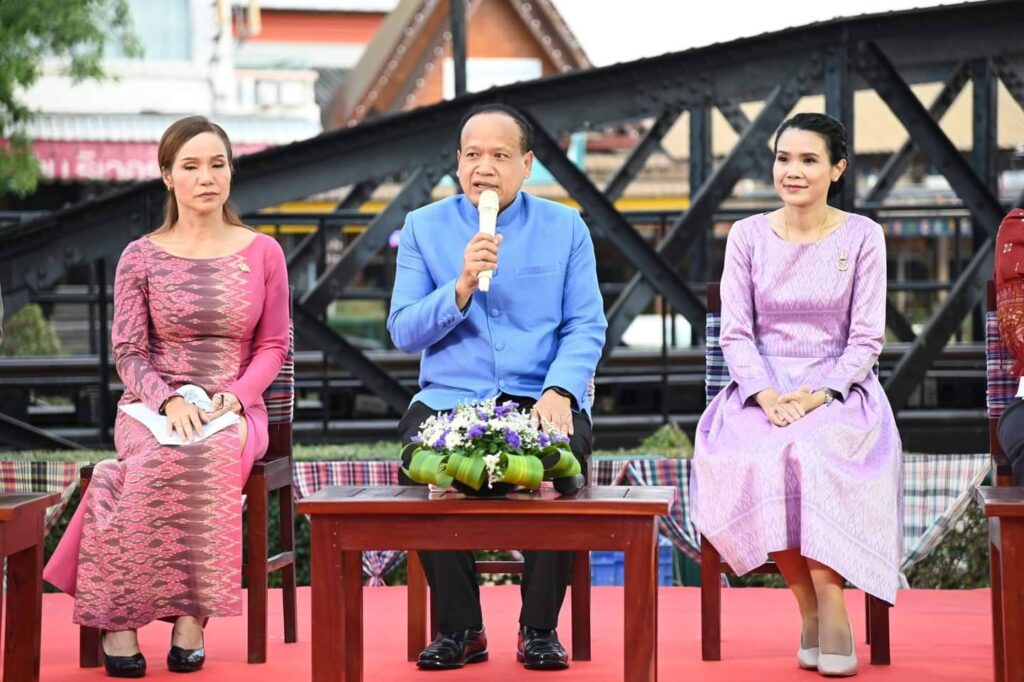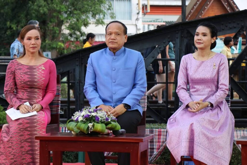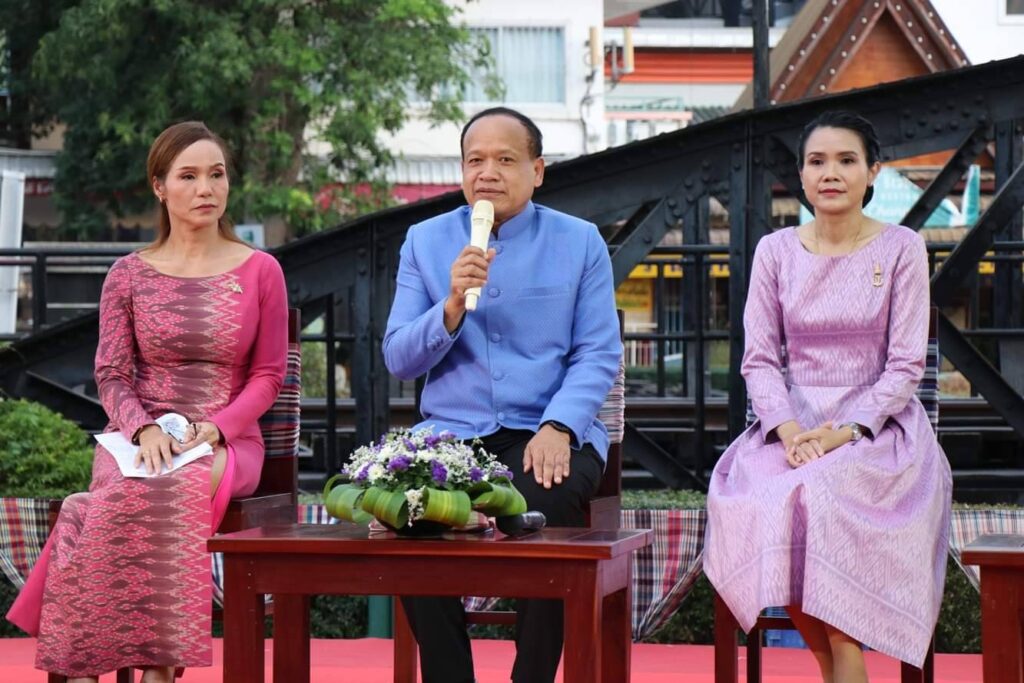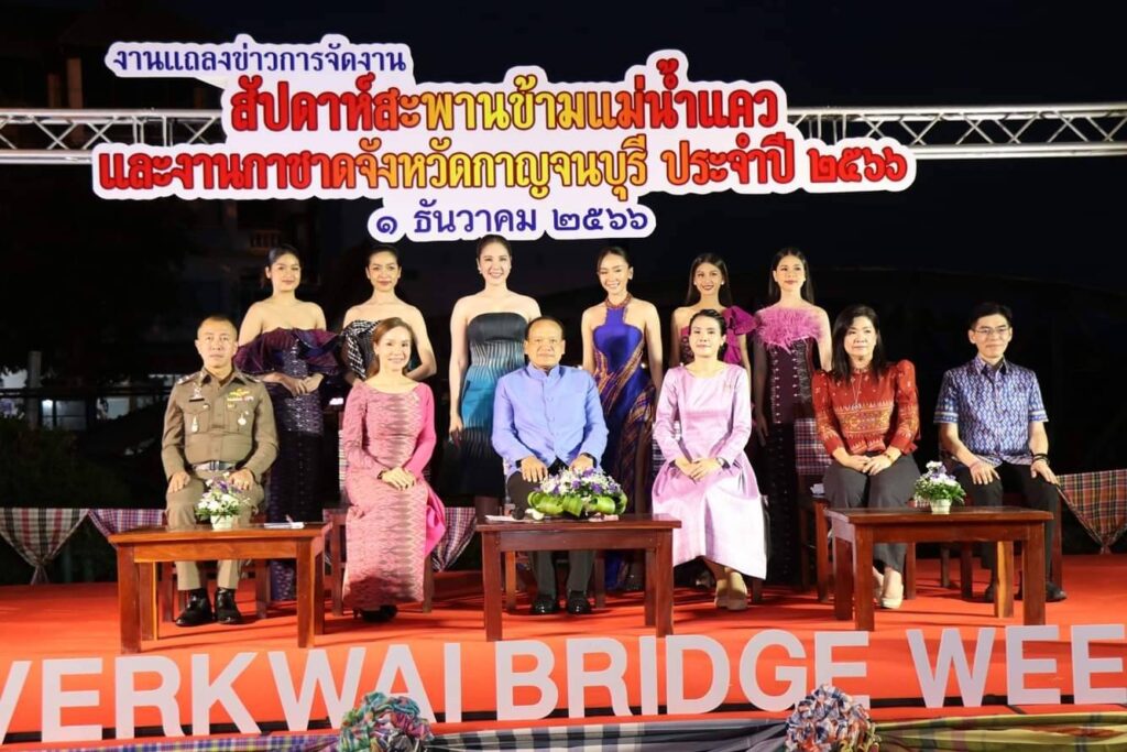 เมื่อเวลา 17.00 น. วันที่ 1 ธันวาคม 2566 ที่บริเวณสะพานข้ามแม่น้ำแคว ตำบลท่ามะขาม อำ เภอเมืองกาญจนบุรี จังหวัดกาญจนบุรี ผู้ว่าราช การจังหวัดกาญจนบุรี มอบหมายให้ นายรณภพ เวียงสิมมา รองผู้ว่าราชการจังหวัดกาญจนบุรี เป็นประธานการแถลงข่าวการจัดงานสัปดาห์สะพานข้ามแม่น้ำแควและงานกาชาดจังหวัดกาญจนบุรี ประจำปี 2566 พร้อมด้วย รศ.ดร. พญ.เรวิกา ไชยโกมินทร์ นายกเหล่ากาชาดจังหวัดกาญจนบุรี พลตำรวจตรี นครินทร์ สุคนธวิท ผู้บังคับการตำรวจภูธรจังหวัดกาญจนบุรี นายแพทย์ปริพนท์ จุลเจิม นายแพทย์สาธารณ สุขจังหวัดกาญจนบุรี ดร.กิรดา ลำโครัตน์ ท่องเที่ยวและกีฬาจังหวัดกาญจนบุรี นางจารีรัตน์ บุญประดิษฐ์ รองปลัดองค์การบริหารส่วนจังหวัดกาญจนบุรี ร่วมแถลงข่าวฯ โดยมี หัวหน้าส่วนราชการ เจ้าหน้าที่ที่เกี่ยวข้อง สื่อมวลชน และชาวจังหวัดกาญจนบุรี ร่วมงานฯ