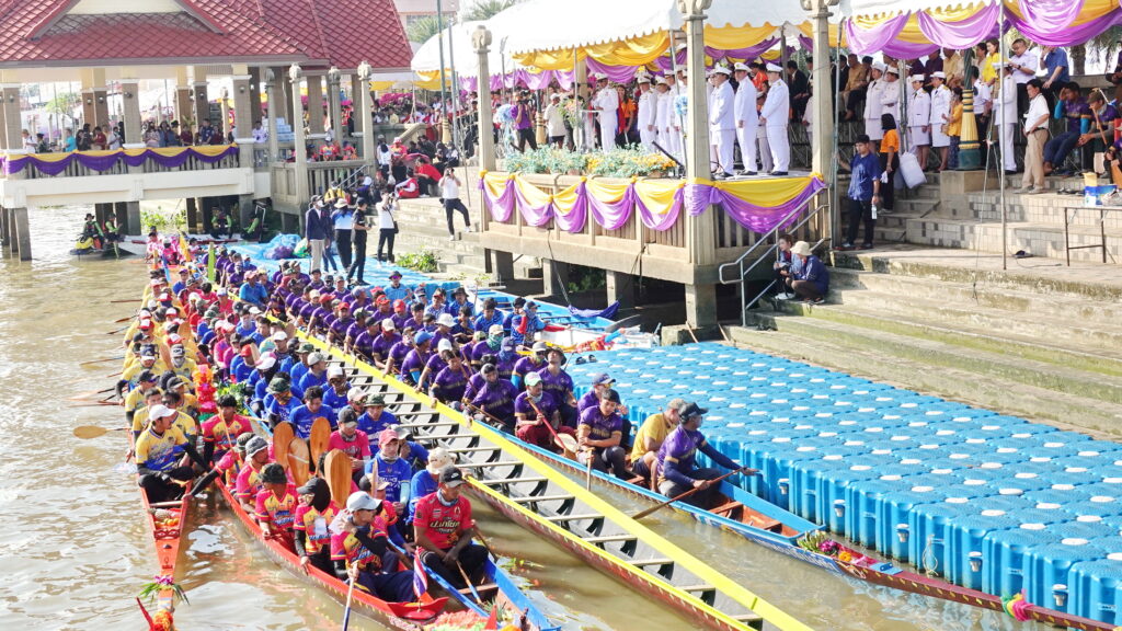 บรรยากาศก่อนพิธีเปิดการแข่งขันเรือยาวฯ ได้มีขบวนอัญเชิญถ้วยพระราชทานฯ โดย พลตำรวจโท คำรณวิทย์ ธูปกระจ่าง นายกองค์การบริหารส่วนจังหวัดปทุมธานี (ประธานจัดงานแข่งเรือฯ) นายชาญยุทธ เสวตสุวรรณ ผู้อำนวยการสำนักงาน การท่องเที่ยวแห่งประเทศไทย (ททท.) , ร้อยตำรวจเอก ดร.ตรีลุพธ์ ธูปกระจ่าง นายกเทศมนตรีนครรังสิต และผู้บริหาร อบจ. ได้ขึ้นช้าง จำนวน 9 เชือก ร่วมขบวนอัญเชิญถ้วยพระราชทาน พระบาทสมเด็จพระเจ้าอยู่หัว และสมเด็จพระนางเจ้าฯ พระบรมราชินี ในงานแข่งขันเรือยาวประเพณี จังหวัดปทุมธานี สำหรับการแข่งขันเรือยาวประเพณีฯ จัดขึ้น ระหว่างวันที่ 3 – 5 ธันวาคมนี้ ณ แม่น้ำเจ้าพระยา บริเวณสวนเทพปทุม ตำบลบางปรอก อำเภอเมืองปทุมธานี จังหวัดปทุมธานี ในการแข่งขันเรีอยาวประเภทต่างๆ ทั้งประเภทเรือยาว 55 ฝีพาย , 40 ฝีพาย และ 30 ฝีพาย และประเภท เรือพายม้า หรือเรือท้องถิ่น 10 ฝีพาย งานแข่งขันเรือยาวประเพณี เที่ยวฟรีชมฟรีตลอดงาน และเลือกชม ชิม ช็อป กับมหกรรมตลาดนัดบัวหลวงกว่า 140 ร้านค้า อาทิเช่น ข้าวแช่ เมี่ยงกลีบบัว ฯลฯ และทุกคืนกับคอนเสิร์ตนักร้องชื่อดัง