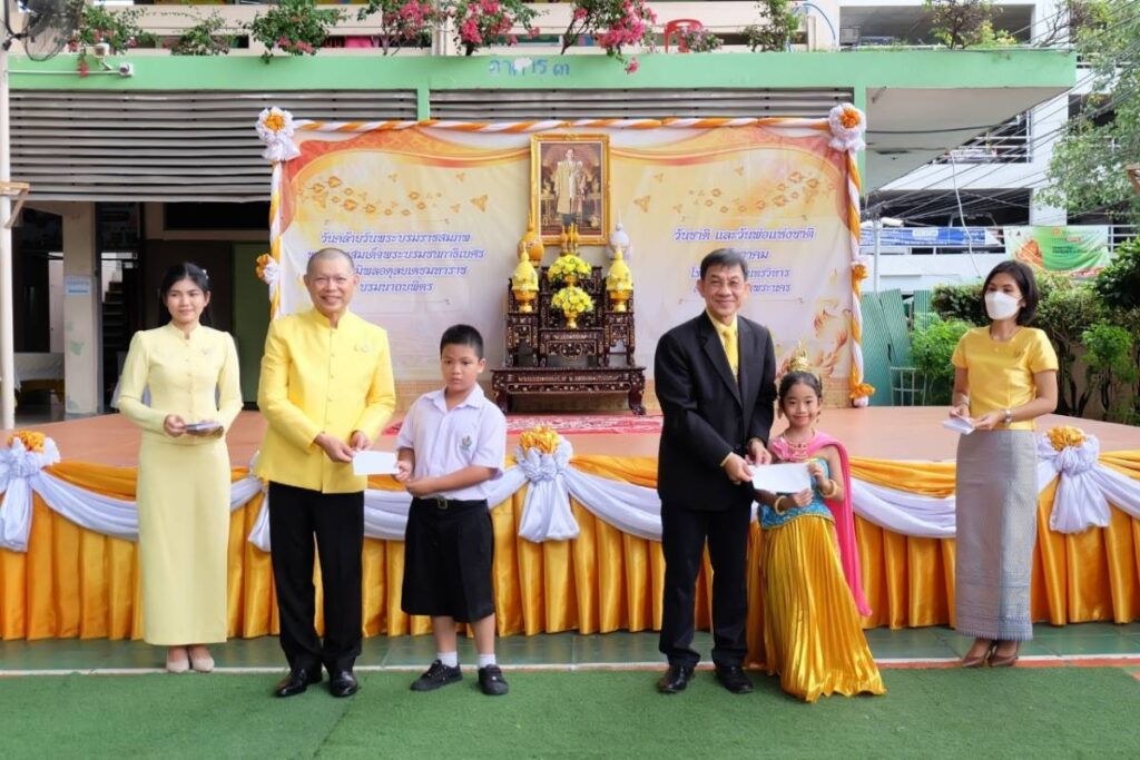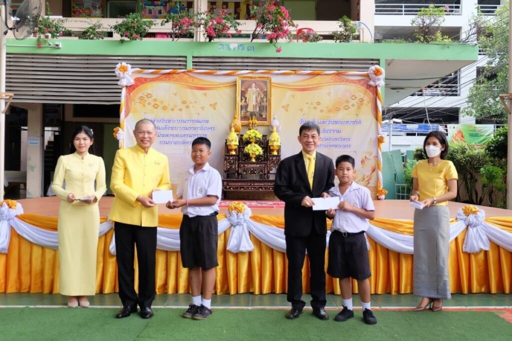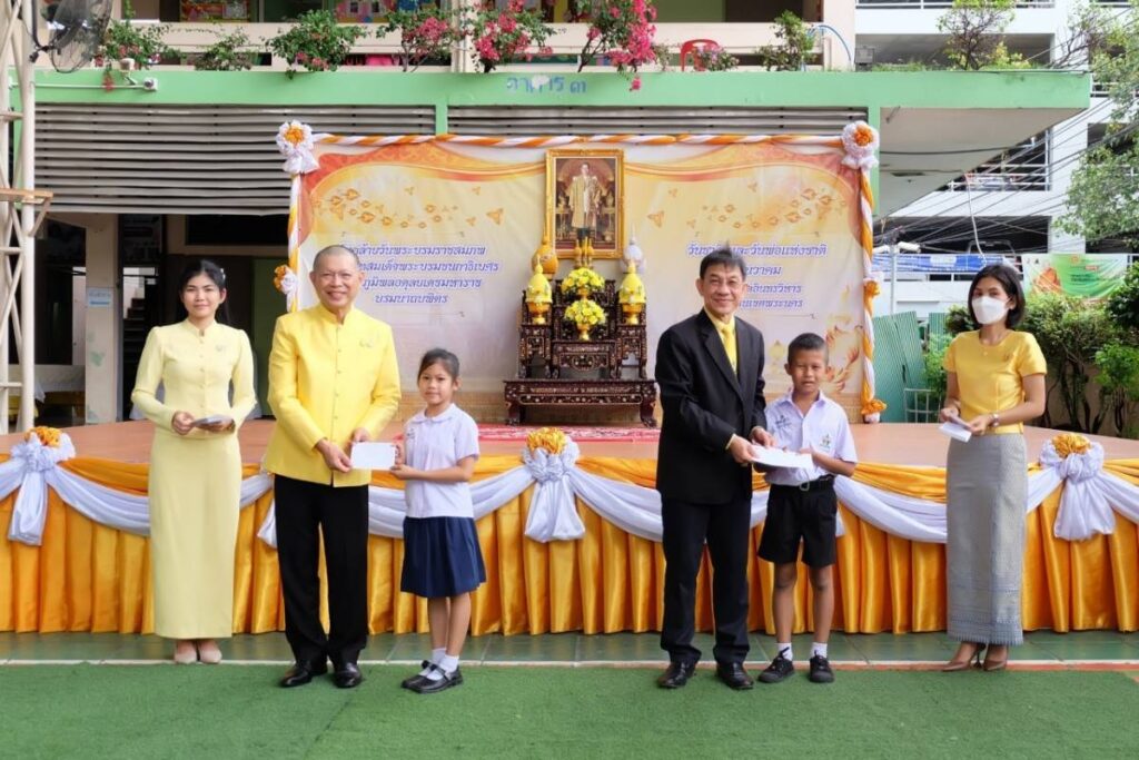 วันนี้ 4 ธันวาคม 2566 เวลา 08.50 น. นายขจิต ชัชวานิชย์ อดีตปลัดกรุงเทพมหานคร พร้อมด้วย นายสมเกียรติ ถาวรวิศิษฐพร ผู้บริหาร บริษัทเจริญโภคภัณฑ์อาหาร จำกัด (มหาชน) หรือ ซีพีเอฟ เป็นประธานกิจกรรม น้อมรำลึกในพระมหากรุณาธิคุณ ในหลวงรัชกาลที่ 9 เนื่องในวันคล้ายวันพระบรมราชสมภพ 5 ธันวาคม และ วันชาติ พร้อมทั้ง มอบทุนการศึกษาให้แก่นักเรียน โรงเรียนวัดอินทรวิหาร ถนนพระราม 8 เขตพระนคร กทม.
