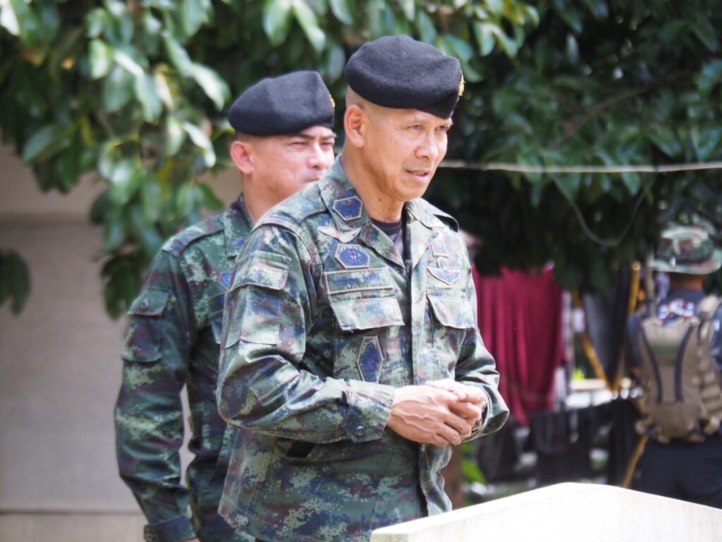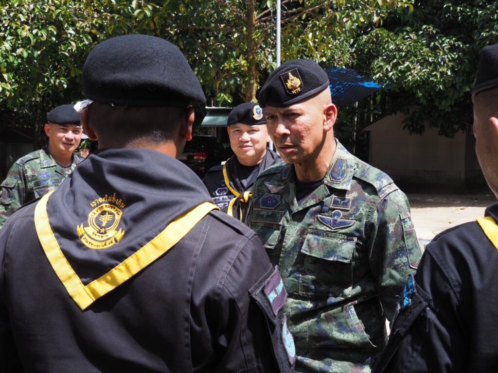 เมื่อวันที่ 4 ธันวาคม 2566 เวลา 1100 น. ที่ ฐานปฏิบัติการกองร้อยทหารพรานที่ 4510 หน่วยเฉพาะกิจกรมทหารพรานที่ 45 บ้านกูตง ตำบลบองอ อำเภอระแงะ จังหวัดนราธิวาส พลตรี เฉลิมพร ขำเขียว ผู้บัญชาการกองพลทหารราบที่ 15 / ผู้บังคับหน่วยเฉพาะกิจนราธิวาส ลงพื้นตรวจเยี่ยมให้กำลังใจ และรับฟังบรรยายสรุปการชี้แจงติดตามเหตุการณ์ที่เกิดขึ้นในพื้นที่ สอบถามข้อขัดข้องในการปฎิบัติงาน พร้อมมอบแนวทางการปฏิบัติงานให้เพิ่มความเข้มงวดพิเศษในช่วงเทศกาลสำคัญ คือเทศกาลส่งท้ายปีเก่าต้อนรับปีใหม่ เพื่อสร้างความมั่นใจและอำนวยความสะดวกแก่พี่น้องประชาชนในทุกเทศกาล การลาดตระเวนเส้นทางให้เกิดความปลอดภัย แก่พี่น้องประชาชนในพื้นที่ และเน้นย้ำกำลังพลที่ปฏิบัติหน้าที่ทั้งในและนอกฐานปฏิบัติการ ตลอดจนกำลังพลที่ลาพัก ต้องไม่ประมาท มีสติอยู่เสมอ พร้อมทั้งการเฝ้าตรวจให้เป็นไปตามสั่งการของ พลโท ศานติ ศกุนตนาค แม่ทัพภาคที่ 4 / ผู้อำนวยการรักษาความมั่นคงภายในภาค 4 โดยมี พันเอก สุรศักดิ์ พึ่งแย้ม ผู้บังคับหน่วยเฉพาะกิจกรมทหารพรานที่ 45 ตลอดจนส่วนที่เกี่ยวข้อง ร่วมให้การต้อนรับ