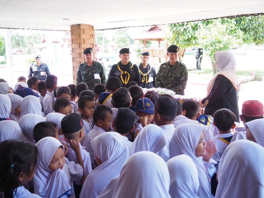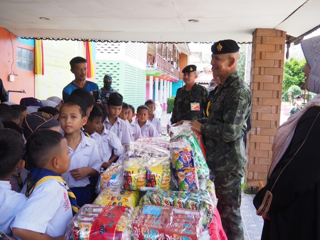 ทั้งนี้ ผู้บังคับหน่วยเฉพาะกิจนราธิวาส ได้มอบนโยบายของผู้บังคับบัญชาให้กับกำลังพลทราบ เน้นย้ำการรักษาความปลอดภัยฐานปฏิบัติการ ต้องมีการปรับเปลี่ยนยุทธวิธีเพื่อป้องกันการเกาะติดของผู้ก่อเหตุรุนแรงเข้ามาสร้างสถานการณ์ในพื้นที่ รวมทั้งย้ำในเรื่องระเบียบวินัยของกำลังพล และไม่สร้างเงื่อนไขในพื้นที่ นอกจากนี้ยังได้มอบสิ่งของอุปโภคบริโภคเพื่อเป็นขวัญและกำลังใจในการปฏิบัติงานให้กับกำลังพลในพื้นที่ต่อไป ในการนี้ ผู้บังคับหน่วยเฉพาะกิจนราธิวาส ได้พบปะ และมอบขนมให้แก่น้องๆ นักเรียนโรงเรียนชุมชนสหพัฒนา จังหวัดนราธิวาสอีกด้วย