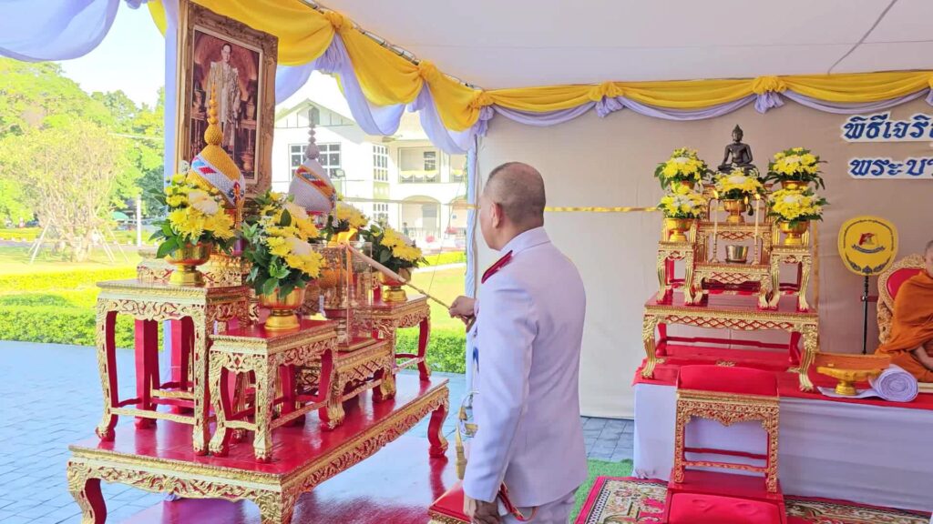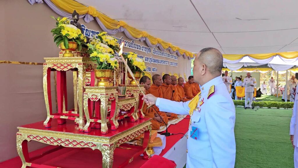 พร้อมทั้งนำ ผู้บังคับหน่วยทหาร ผู้แทนหน่วยงาน ร่วมพิธีวางพานพุ่ม ถวายเครื่องราชสักการะ ต่อเบื้องหน้า พระบรมราชานุสาวรีย์ พระบาทสมเด็จพระบรมชนกาธิเบศร มหาภูมิพลอดุลยเดชมหาราช บรมนาถบพิตร เนื่องในโอกาส วันคล้ายวันพระบรมราชสมภพ วันชาติ และวันพ่อแห่งชาติ 5 ธันวาคม 2566 พร้อมกล่าวคำสำนึกในพระมหากรุณาธิคุณ ของพระองค์ท่าน ที่ ทรงมีต่อพสกนิกรชาวไทย อย่างเป็นอเนกอนันต์ ตลอด 70 ปี แห่งการครองราชย์ และทรงปฏิบัติพระราชกรณียกิจน้อยใหญ่ เพื่อก่อเกิดประโยชน์อย่างยั่งยืนแก่ประเทศชาติและประชาชน ทรงอุทิศเวลาในการเสด็จพระราชดำเนินไป ยังท้องถิ่นทุรกันดารในภูมิภาคต่างๆ เพื่อช่วยพัฒนาความเป็นอยู่ของราษฎรให้ดีขึ้น