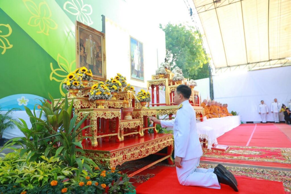 หลังจากนั้น ร่วมพิธีถวายพานพุ่มราชสักการะ ถวายราชสดุดี และถวายบังคมเบื้องหน้าพระบรมฉายาลักษณ์ เนื่องในโอกาสวันคลัายวันพระราชสมภพ พระบาทสมเด็จพระบรมชนกาธิเบศร มหาภูมิพลอดุลยเดชมหาราช บรมนาถบพิตร ณ ห้องประชุมแก่นเมือง ศาลากลางจังหวัดขอนแก่น เพื่อแสดงออกถึงความจงรักภักดี น้อมรำลึก และสำนึกในพระมหากรุณาธิคุณอย่างหาที่สุดมิได้