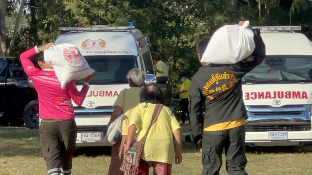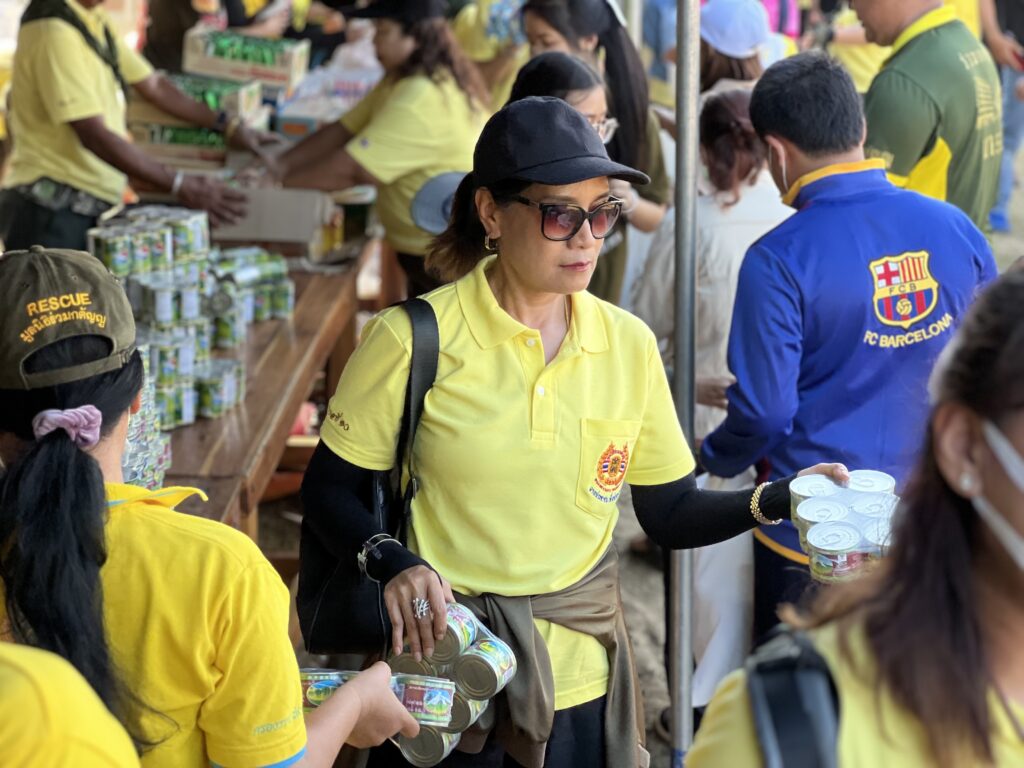 โดยการมอบ เงินสดคนละ 500 บาท พร้อมสิ่งของบรรเทาทุกข์แก่ประชาชน,คนเผ่า และ โรงเรียนต่างๆ จำนวน 18 โรงเรียน พร้อมทุนอาหารกลางวัน โรงเรียนละ 5,000 บาท ในพื้นที่ตำบลร่องเคาะและใกล้เคียง รวมทั้ง ชุดดับไฟป่าและหน่วยป้องกันรักษาป่า ในพื้นที่ จ.ลำปาง แพร่ น่าน จำนวน กว่า 2,000 ชุด