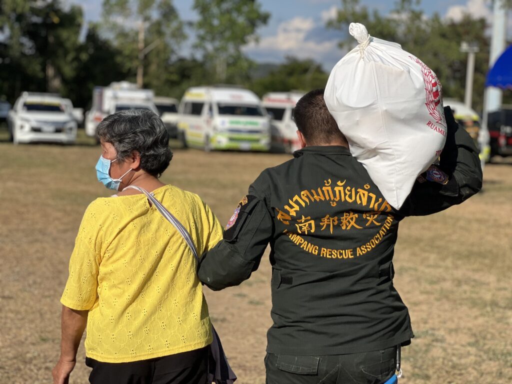 วันที่ 5 ธันวาคม 2566 ที่ลานของโรงเรียน บ้านวังใหม่ ตำบลร่องเคาะ อำเภอวังเหนือ จังหวัดลำปาง มูลนิธิร่วมกตัญญู นำโดย ดร.รัตนา สมสกุลรุ่งเรือง ประธานมูลนิธิร่วมกตัญญู,นายสมศักดิ์ ปาลวัฒน์ ผู้จัดการมูลนิธิ พร้อมด้วย พี่ บิณฑ์ บรรลือฤทธิ์ ผู้จัดการฝ่ายกิจกรรมพิเศษ,พี่ ต้น อธิวัฒน์ สนิทวงษ์ ณ อยุธยา รองหัวหน้าอาสาสมัคร พร้อม เจ้าหน้าที่อาสาสมัคร และ ขุนพลรวงข้าวสายเหนือ (อาสาสมัครกู้ชีพกู้ภัย ภาคเหนือในเคลือข่าย)