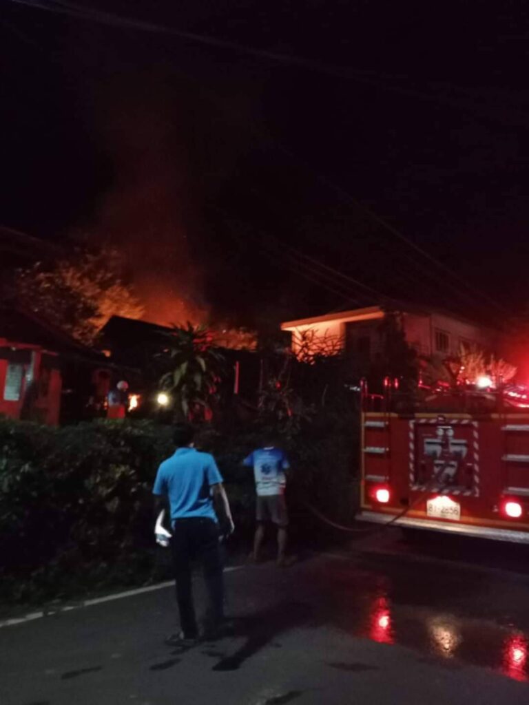 ต่าง , ประตู และไม้แผ่นฝาบ้านที่รื้อมาเก็บกองรวมกันไว้ จนกระทั่งเวลาประมาณ 20.00 น. ขณะอยู่ในบ้านเห็นแสงไฟที่เพิงหลังบ้านจึงออกไปดูพบไฟไหม้ จึงเรียกชาวบ้านมาช่วย ต่อมาได้มีเจ้าหน้าที่นำรถดับเพลิงมาฉีดน้ำและสามารถควบคุมไฟไว้ได้ เชื่อว่าสาเหตุไฟไหม้เนื่องจากถ่านที่เผาเสร็จใหม่ที่นำมาใส่ถุงปุ๋ยและนำมาเก็บไว้ในเพิงเก็บของหลังบ้านถ่านยังไม่ดับสนิททำให้เกิดเป็นไฟไหม้ติดลุกลามไปไหม้กองไม้เรือนเก่าและรถจักรยานยนต์ที่จอดไว้จนได้รับความเสียหายดังกล่าว ไม่ได้เกิดจากการกระทำของบุคคลอื่นแต่อย่างใดและไม่ติดใจที่จะให้เจ้าหน้าที่พิสูจน์หลักฐานมาตรวจพิสูจน์เนื่องทราบสาเหตุไฟไหม้มาจากถ่านไฟที่ดับไม่สนิทนำมาเก็บไว้จนเกิดเป็นไฟไหม้ดังกล่าว