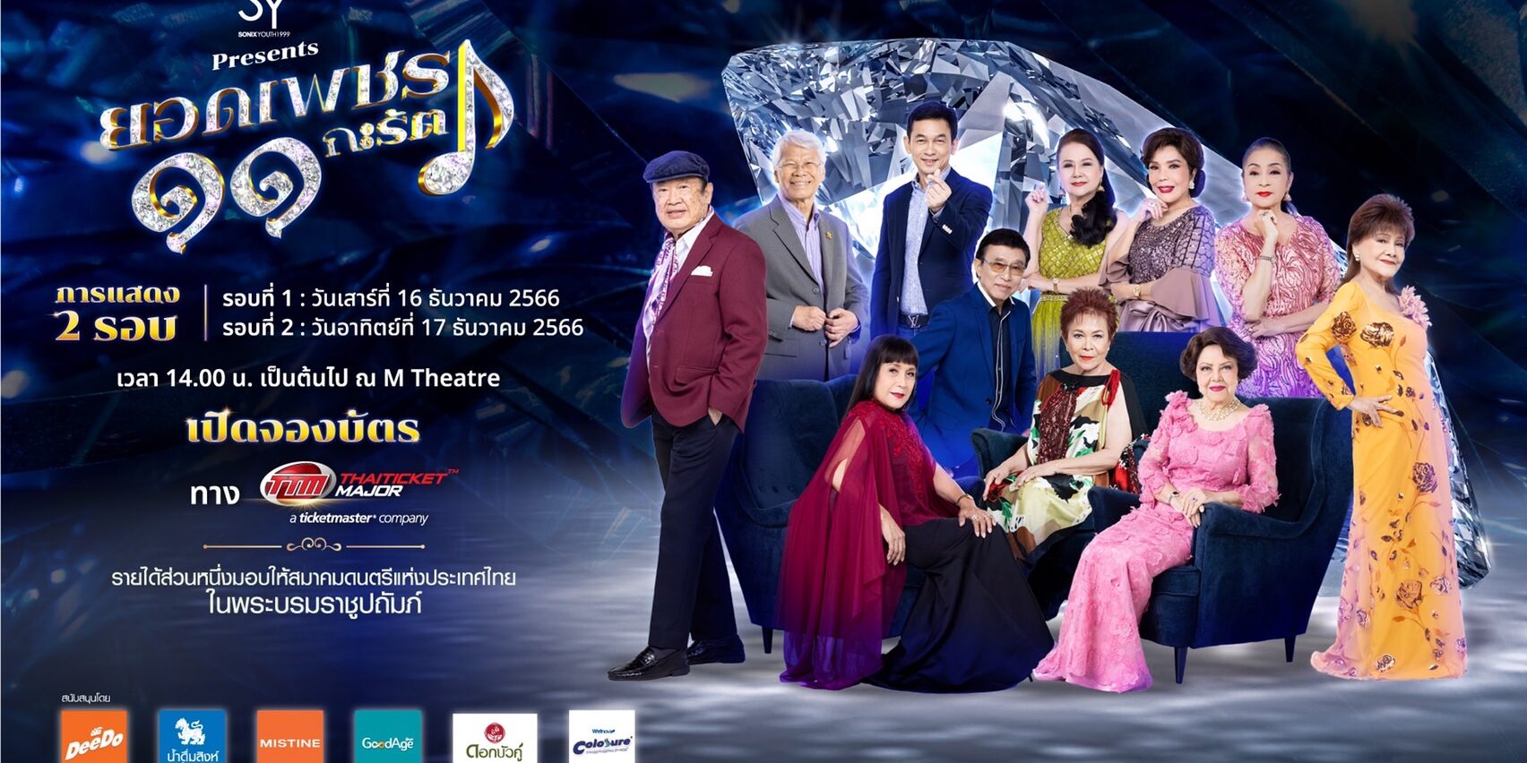 มาร่วมส่งมอบของขวัญจากบทเพลงแทนความรัก ความห่วงใย ให้กับคนที่คุณรัก และร่วมเป็นส่วนหนึ่งของการจารึกประวัติศาสตร์ตำนานบทใหม่ไปกับคอนเสิร์ต “ยอดเพชร ๑๑ กะรัต” โดยจัดแสดง ๒ รอบ ในวันเสาร์ที่ ๑๖ และ วันอาทิตย์ที่ ๑๗ ธันวาคม ๒๕๖๖ ณ โรงละคร M Theatre ถนนเพชรบุรี เวลา ๑๔.๐๐ น. เป็นต้นไป ….