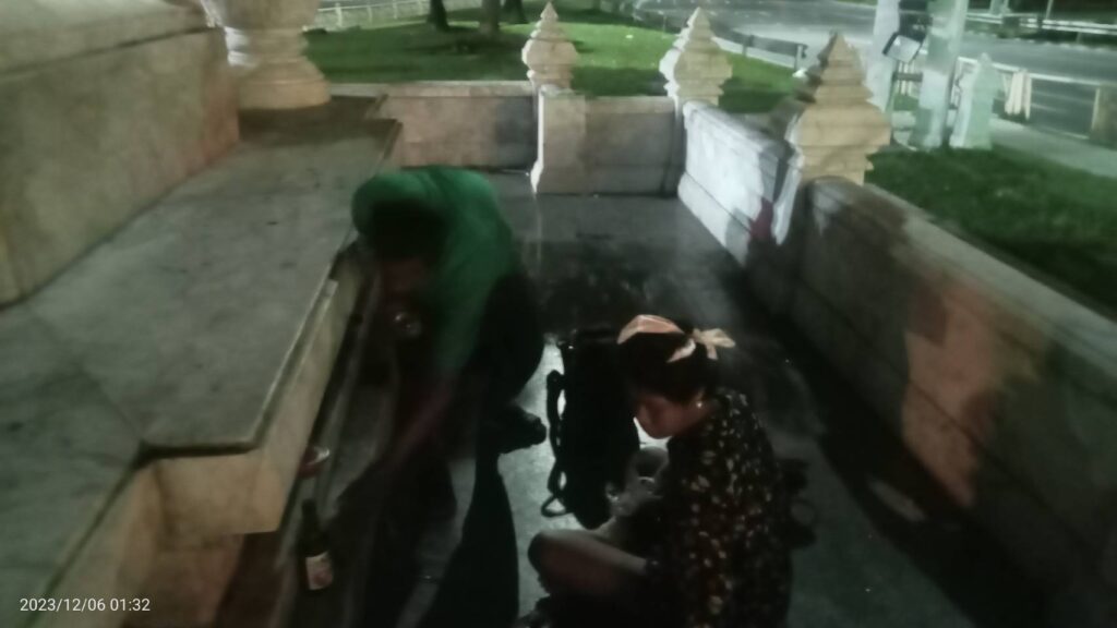 ช่วงดึกผ่านมา วันอังคารที่ 6 ธันวาคม 2566 เวลา 01:32 น. นายโกศล สิงหนาท ผู้อำนวยการเขตพระนคร นายกฤษดา เพ็ชรสีสัง ผู้ช่วยผู้อำนวยการเขตพระนคร มอบหมาย นายณัฐชนนท์ ชญาน์ธนวิชญ์ หัวหน้าฝ่ายเทศกิจ นายศุภกฤต สูนโยธา เจ้าพนักงานงานเทศกิจชำนาญการ สั่งการให้ นายนิติ ยอดแคร่ว หัวหน้าชุดสายตรวจ จัดกำลัง เจ้าหน้าที่เทศกิจสายตรวจชุด 255 โดยมี นายธีรพล ปลื้มถนอม สายตรวจเทศกิจชุด 255 ลงพื้นที่ ตรวจสอบความเรียบร้อยกวดขันผู้ค้าและคนเร่ร่อน บริเวณอนุเสาวรีย์ช้างสี่เศียร ถนนราชดำเนินกลางขาเข้า เขตพระนคร กทม.