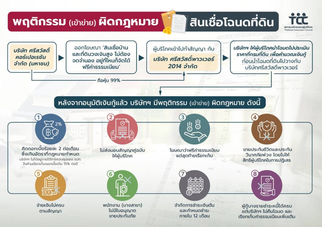 ซึ่งเวลาต่อมา บริษัท ศรีสวัสดิ์ คอร์เปอเรชั่น จำกัด (มหาชน) ออกมาชี้แจงหลังคำพิพากษาชั้นต้นว่า กรณีดังกล่าวไม่เป็นความจริงทางบริษัทไม่มีนโยบายและการทำงานที่ขัดต่อกฏหมาย ทางบริษัทมีหลักฐานภาพถ่ายผู้บริโภคลงนามในสัญญาและหลักฐานการโอนเงินเข้าบัญชี พร้อมระบุว่าคดียังไม่สิ้นสุดจึงไม่อาจกล่าวได้ว่าบริษัทปลอมแปลงเอกสารเงินกู้