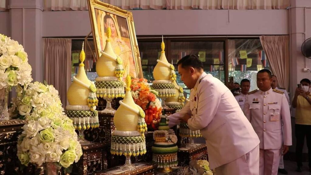 ประธานในพิธีจุดธูปเทียนบูชาพระรัตนตรัย เปิดกรวยดอกไม้รูปเทียนแพถวายราชสักการะเบื้องหน้าพระบรมฉายาลักษณ์ สมเด็จพระเจ้าลูกเธอ เจ้าฟ้าพัชรกิติยาภา นเรนทิราเทพยวดี กรมหลวงราชสาริณีสิริพัชร มหาวัชรราชธิดา ประธานสงฆ์ให้ศีล และกล่าวสัมโมทนียกถา ประธานพิธีถวายผ้าไตร จำนวน 10 ไตร ถวายจตุปัจจัยไทยธรรม กรวดน้ำ-รับพร ประธานพิธีกราบลาพระรัตนตรัย ถวายความเคารพเบื้องหน้าพระฉายาลักษณ์ เพื่อเป็นการแสดงออกถึงความจงรักภักดี และสำนึกในพระมหากรุณาธิคุณอันหาที่สุดมิได้ ที่พระองค์ ทรงบำเพ็ญพระราชกรณียกิจนานับปการด้วยพระปรีชาสามารถ เพื่อพัฒนาประเทศให้ก้าวหน้าและยั่งยืนในทุกระดับ อาทิ มูลนิธิอาสาเพื่อนพึ่ง (ภาฯ) ยามยาก สภากาชาดไทย มูลนิธิ ณภาฯ ในพระดำริ โครงการราชทัณฑ์ปันสุข และโครงการกำลังใจในพระดำริ ซึ่งล้วนแสดงถึงพระอัจฉริยภาพอันลึกซึ้งและเป็นเลิศในการนำพาประเทศไปสู่ความร่มเย็นเป็นสุขตลอดมา