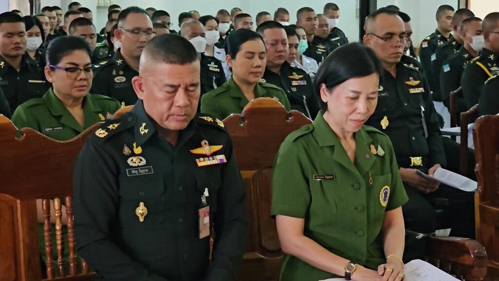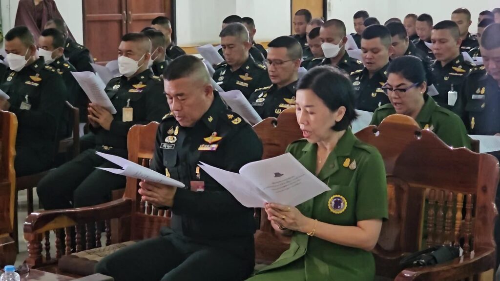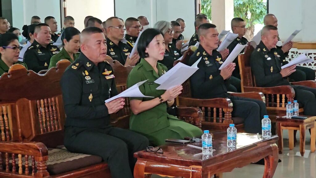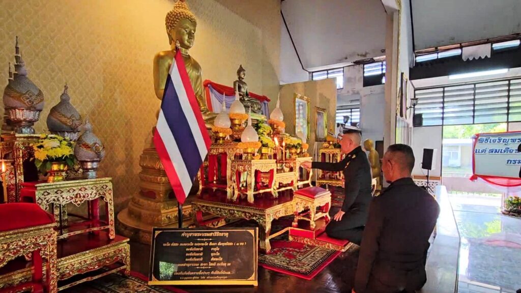 พลตรี พิศิษฐ ปัญญานะ ผู้บัญชาการศูนย์การทหารปืนใหญ่ เป็นประธาน นำข้าราชการกำลังพล หน่วยขึ้นตรง ศูนย์การทหารปืนใหญ่ ภายในค่ายภูมิพล พร้อมด้วย คณะสมาคมแม่บ้านทหารบก สาขาศูนย์การทหารปืนใหญ่ เข้าร่วมพิธีเจริญพระพุทธมนต์ 9 บทสวด เพื่อถวายพระพรชัยมงคล และเจริญจิตภาวนา ถวายเป็นพระราชกุศล เนื่องในโอกาสวันคล้ายวันประสูติ ของสมเด็จพระเจ้าลูกเธอ เจ้าฟ้าพัชรกิติยาภา นเรนทิราเทพยวดี กรมหลวงราชสาริณี สิริพัชร มหาวัชรราชธิดา เพื่อขอให้พระองค์ ทรงมีพระพลานามัยสมบูรณ์ ปราศจากโรคาพาธ และอุปัทวันตรายทั้งปวง ทรงเจริญพระชนมายุยิ่งยืนนาน ตลอดจน เพื่อร่วมกันแสดงออกถึงความจงรักภักดีต่อสถาบันพระทหากษัตริย์ ต่อเบื้องหน้าพระรูปของพระองค์ท่าน ณ ศาสนสถานศูนย์การทหารปืนใหญ่ ค่ายภูมิพล ตำบลเขาพระงาม อำเภอเมือง จังหวัดลพบุรี อย่างพร้อมเพรียงกัน
