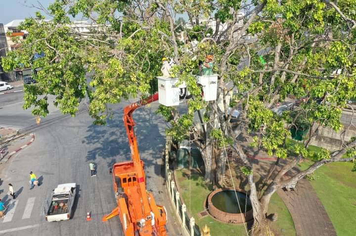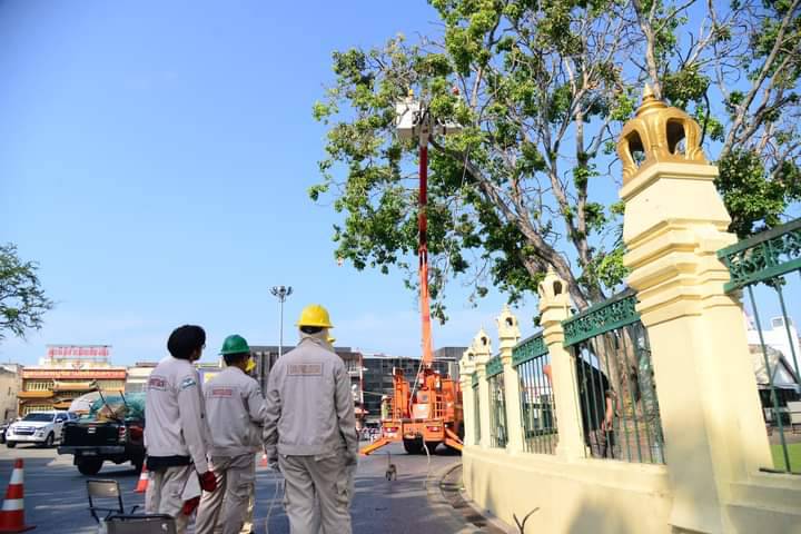 รุกขกร กฟภ. ร่วมตัดกิ่งและบูรณะต้นไม้ใหญ่ในศาลพระกาฬลพบุรี เตรียมรับงานแผ่นดินสมเด็จพระนารายณ์มหาราช