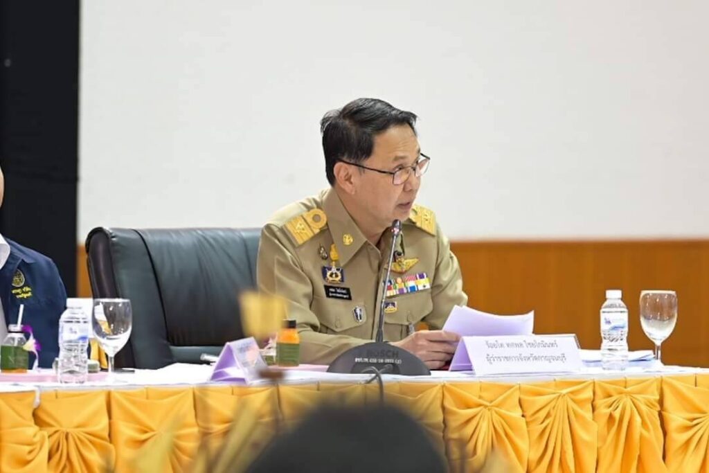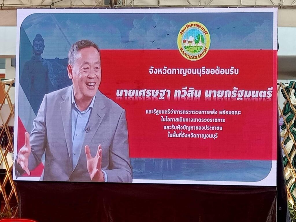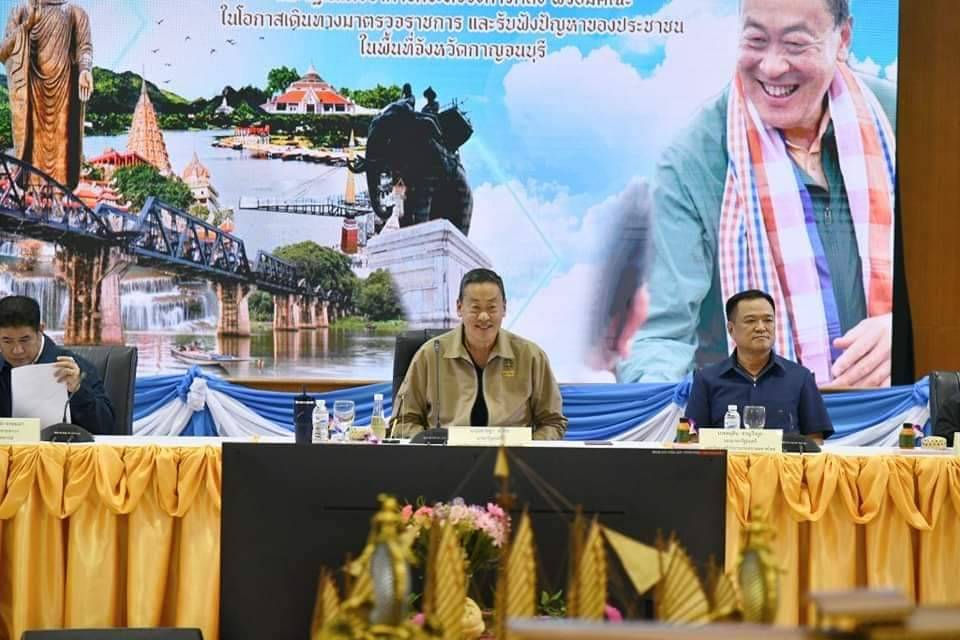 นายเศรษฐา ทวีสิน นายกรัฐมนตรีและรัฐมนตรีว่าการกระทรวงการคลัง ได้กล่าวชื่นชมการบรรยายสรุปของจังหวัดกาญจนบุรีที่มีความพร้อมทุกอย่าง โดยขอย้ำในบางเรื่อง เช่น การแก้ไขปัญหาการจัดสรรที่ดินที่มีมาตั้งแต่ พ.ศ. 2481 มีปัญหากันมานาน และขอสั่งการให้หน่วยงานที่เกี่ยวข้อง ทั้งทหาร กระทรวงเกษตรและสหกรณ์ กระทรวงมหาดไทย และจังหวัด โดยขอให้ผู้ว่าราชการจังหวัดกาญจนบุรี และหน่วยงานอื่น ๆ ให้เร่งช่วยเหลือและบรรเทาความเดือดร้อนของประชาชนให้เต็มที่ ประชาชนจะได้มีสินทรัพย์นำไปเป็นทุนในการประกอบอาชีพ