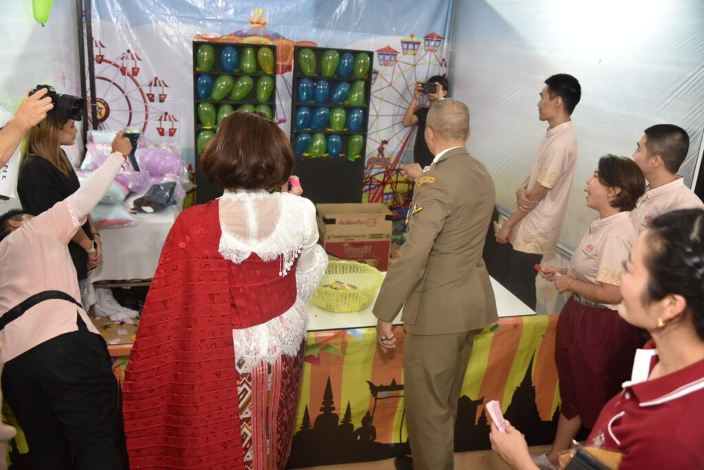 จากนั้นผู้บัญชาการตำรวจแห่งชาติ และนายกสมาคมแม่บ้านตำรวจ ได้เยี่ยมชมร้านของสำนักงานตำรวจแห่งชาติ บริเวณโซน 5 ซึ่งมีกองบัญชาการตำรวจสันติบาล กองบัญชาการตำรวจท่องเที่ยว และกองบัญชาการตำรวจสืบสวนสอบสวนอาชญากรรมทางเทคโนโลยี เป็นเจ้าภาพ โดยได้ชมนิทรรศการเกี่ยวกับวิวัฒนาการตำรวจไทย “ย้อนรอย 100 ปีกิจการตํารวจไทย”,ร่วมถ่ายภาพกับภาพเหมือนของตำรวจโบราณ,ความรู้เกี่ยวกับอาชญากรรมทางไซเบอร์ “ตํารวจไซเบอร์ผู้พิทักษ์ภัยออนไลน์ 24 ชั่วโมง” และยังได้ร่วมสนุกกับกิจกรรม “สนุกกับเกม” ได้แก่ เกมปาโป่ง และเกมตักไข่นำโชค นอกจากนี้ ผู้บัญชาการตำรวจแห่งชาติได้ร่วมร้องเพลงบนเวที สร้างความสุขให้กับผู้เข้าร่วมสนุกที่ร้านของสำนักงานตำรวจแห่งชาติอีกด้วย