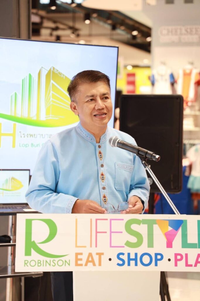 นายแพทย์เมธี วงศ์เสนา ผู้อำนวยการโรงพยาบาลมะเร็งลพบุรี กรมการแพทย์ เป็นประธาน ตัดริบบิ้น ในพิธีเปิดโครงการ “รณรงค์ต่อต้านโรคมะเร็ง” เนื่องในวันต่อต้านโรคมะเร็งแห่งชาติประจำปี 2566 ณ ลานกิจกรรม ชั้น 2 ศูนย์การค้าโรบินสันไลฟ์สไตล์ จังหวัดลพบุรี