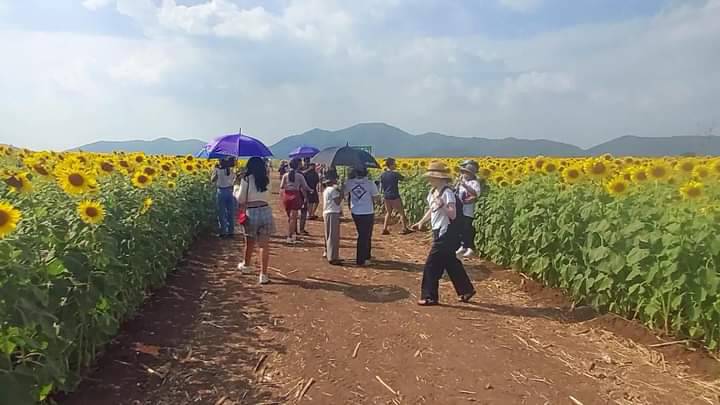 ซึ่งมีผู้ใช้รถสัญจรผ่านไปมากันเป็นจำนวนมาก จึงถือโอกาสเปิดพื้นที่บริเวณด้านหน้าแปลงปลูกทานตะวันบางส่วน ให้เป็นจุดพักรถริมทาง เพื่อเปิดให้นักท่องเที่ยวแวะพักรถและเที่ยวชมดอกทานตะวัน ที่กำลังบานสะพรั่งเหลืองอร่าม รับกับแสงตะวันยามเช้า และเบ่งบานหันหน้าสู้แดดตลอดทั้งวัน จนได้ชื่อว่า “ดอกทานตะวัน” โดยมีฉากหลังเป็นภูเขา บริเวณเทือกเขาจีนแล ตัดกับท้องฟ้าสีครามที่สวยงาม