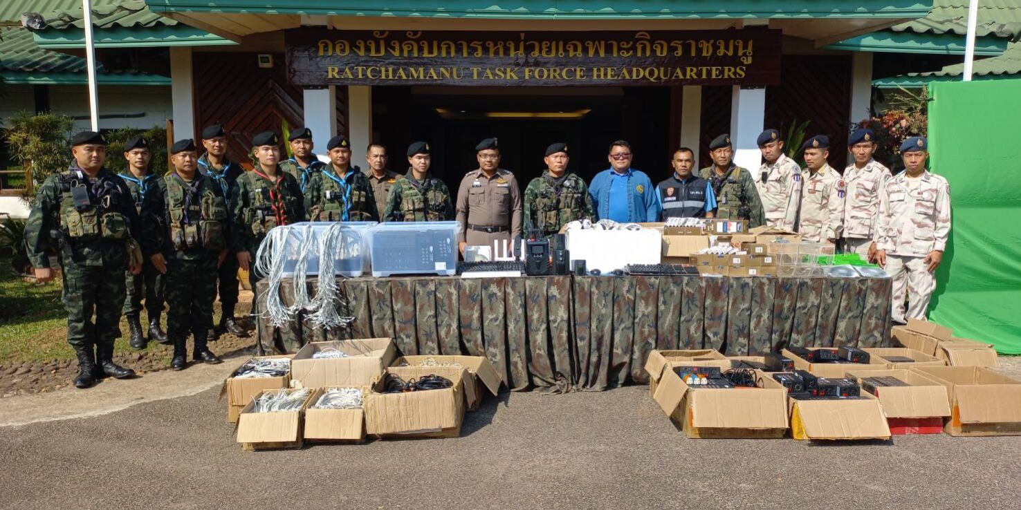 เมื่อเวลา 10.00 น.( 11 ธ.ค 66 ) พันเอก ณัฐกร เรือนตื๊บ ผู้บังคับหน่วยเฉพาะกิจราชมนู พร้อมนายสัญญา เพชรเศษ นายอำเภอแม่สอด ร่วมกันนำกำลังเจ้าหน้าที่กองร้อยอาสารักษาดินแดนอำเภอแม่สอดที่ 3 ตำรวจตรวจคนเข้าเมืองจังหวัดตากและตำรวจ สภ.แม่สอด จังหวัดตาก ได้ร่วมกันตั้งจุดตรวจบนถนนสายแม่สอด-ตาก และพบรถยนต์ขนส่งพัสดุสินค้าต้องสงสัยขับผ่านจุดตรวจความมั่นคงบ้านห้วยหินฝน อำเภอแม่สอด จังหวัดตาก เจ้าหน้าที่จึงหยุดรถยนต์คันดังกล่าวซึ่งภายหลังรถยนต์คันดังกล่าวจอดเจ้าหน้าที่ตรวจพบกล่องพัสดุขนาดใหญ่จำนวน 6 กล่องและเมื่อเจ้าหน้าที่แสดงตัวขออนุญาตเพื่อตรวจสอบกล่องดังกล่าวพบว่าภายในกล่องทั้ง 6 กล่องภายในพบเป็นอุปกรณ์สื่อสารจำนวนมากซึ่งคาดว่าจะเป็นอุปกรณ์ที่เกี่ยวข้องกับพนันออนไลน์และกลุ่มคอลเซ็นเตอร์ ซึ่งพนักงานขับรถยนต์ขนส่งพัสดุดังกล่าวก็กล่าวอ้างว่าตนเองเป็นเพียงรถรับจ้างขนส่งสินค้าทั่วไปและไม่ทราบว่าภายในกล่องเป็นสินค้าชนิดใดและให้ความร่วมมือกับเจ้าหน้าที่แจ้งพิกัดกลุ่มว่าจ้างว่าอยู่ที่ใดจนเจ้าหน้าที่ได้ข้อมูลสำคัญ