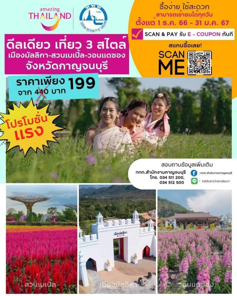 ✴️โปรโมชั่น “ดีลเดียว เที่ยว 3 สไตล์” เมืองมัลลิกา – สวนเมเปิ้ล – วอนแดซอง แพคเกจราคา 199 บาท จาก 440 บาท ตั้งแต่วันที่ 1 ธันวาคม 2566 ถึงวันที่ 31 มกราคม 2567