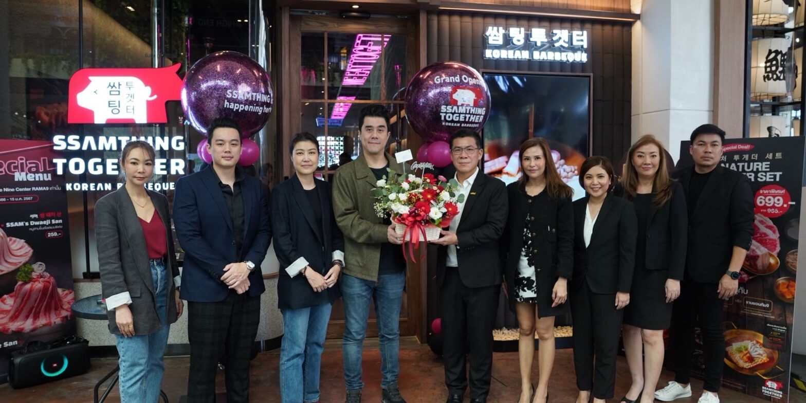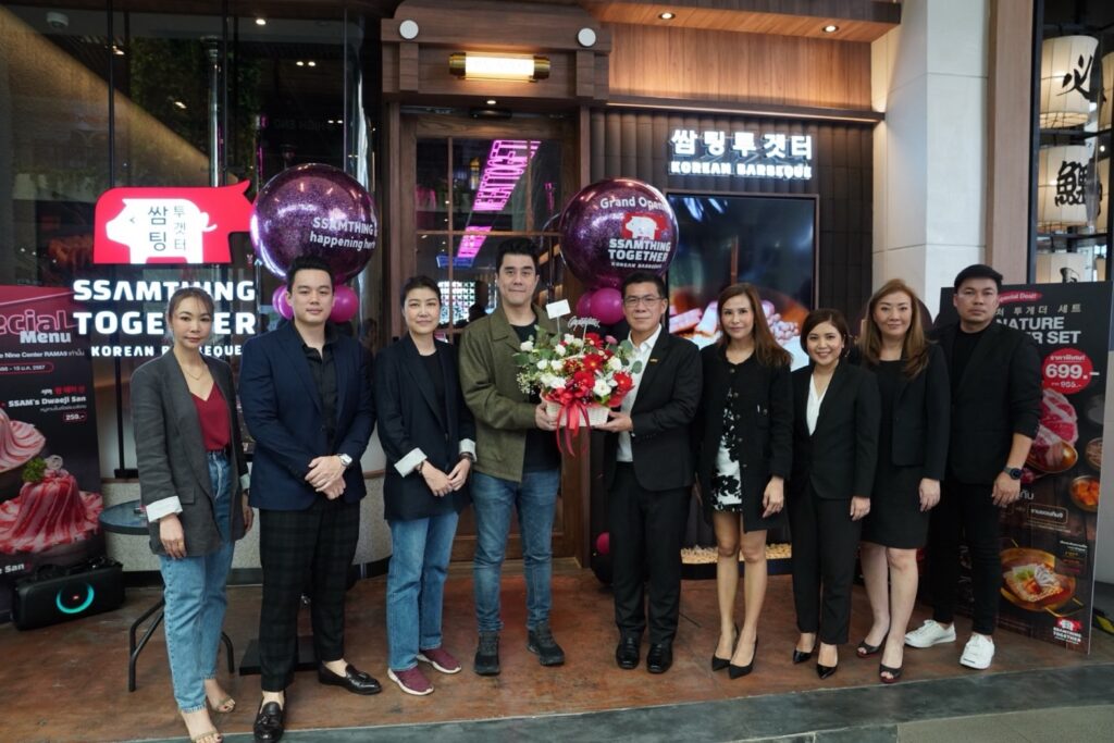 นางพิทยา อินภิรมย์ ผู้จัดการทั่วไป บริษัท เดอะไนน์ เซ็นเตอร์ จำกัด (ที่ 7 จากซ้าย) ร่วมแสดงความยินดีกับ นายจักรกฤติ สายสมบูรณ์ กรรมการบริหาร บริษัท มากุโระ กรุ๊ป จำกัด (มหาชน) ในโอกาสเปิดร้าน SSAMTHING TOGETHER (ซัมติง ทูเก็ทเตอร์) ร้านปิ้งย่างเกาหลีพรีเมียมภายใต้ แบรนด์ MAGURO Group ที่คัดสรรแต่วัตถุดิบชั้นดี เสิร์ฟพร้อมอาหารเกาหลีที่หลากหลาย ให้บนโต๊ะโอบล้อมด้วยรอยยิ้มแห่งการแชร์ความสุขของทุกคน อย่างเป็นทางการ บริเวณ ชั้น 1 โซนเวสต์ วิลเลจ ศูนย์การค้าเดอะไนน์ เซ็นเตอร์ พระราม 9 เมื่อเร็ว ๆ นี้