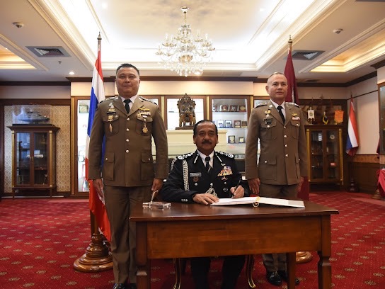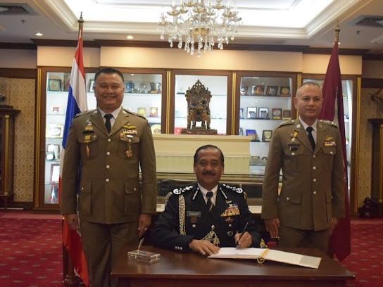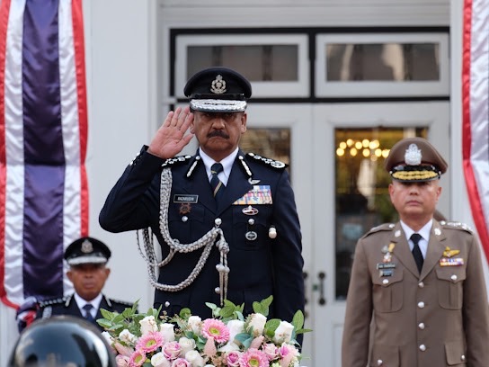 ให้การต้อนรับ Tan Sri Razarudin bin Husain ผู้บัญชาการตำรวจแห่งชาติมาเลเซีย ในโอกาสเยือนประเทศไทย เพื่อเข้าร่วมการแข่งขันรักบี้ฟุตบอลประเพณีตำรวจไทย-ตำรวจมาเลเซีย ชิงถ้วย “รุจิรวงศ์” ครั้งที่ 34 ซึ่งในปีนี้ประเทศไทยได้รับเกียรติเป็นเจ้าภาพ ในการนี้ พล.ต.ท.กรไชย คล้ายคลึง ผู้ช่วยผู้บัญชาการตำรวจแห่งชาติ พร้อมด้วยผู้บังคับบัญชาระดับสูงของสำนักงานตำรวจแห่งชาติ ร่วมให้การต้อนรับ ณ ห้องพรมนอก ชั้น 2 อาคาร 1 สำนักงานตำรวจแห่งชาติ