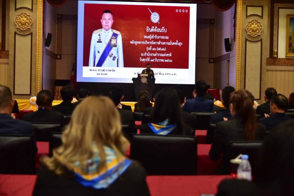 เมื่อวันที่ 15 ธันวาคม 2566 ที่ห้องประชุมศรียานนท์ สำนักงานตำรวจแห่งชาติ พล.ต.อ.สราวุฒิ การพานิช รอง ผบ.ตร. และคณะผู้บริหารของสำนักงานตำรวจแห่งชาติ ให้การต้อนรับ พลเอกจรัล กุลละวณิชย์ ประธานหลักสูตร และประธานมูลนิธิการจัดการเพื่อความมั่นคง พลเอก ดร.มารุต ปัชโชตะสิงห์ ผู้อำนวยการหลักสูตร มส. พร้อมคณาจารย์ และผู้เข้าอบรมหลักสูตรการบริหารจัดการด้านความมั่นคงขั้นสูง ( มส. รุ่นที่ 16) ในการศึกษาดูงานครั้งนี้