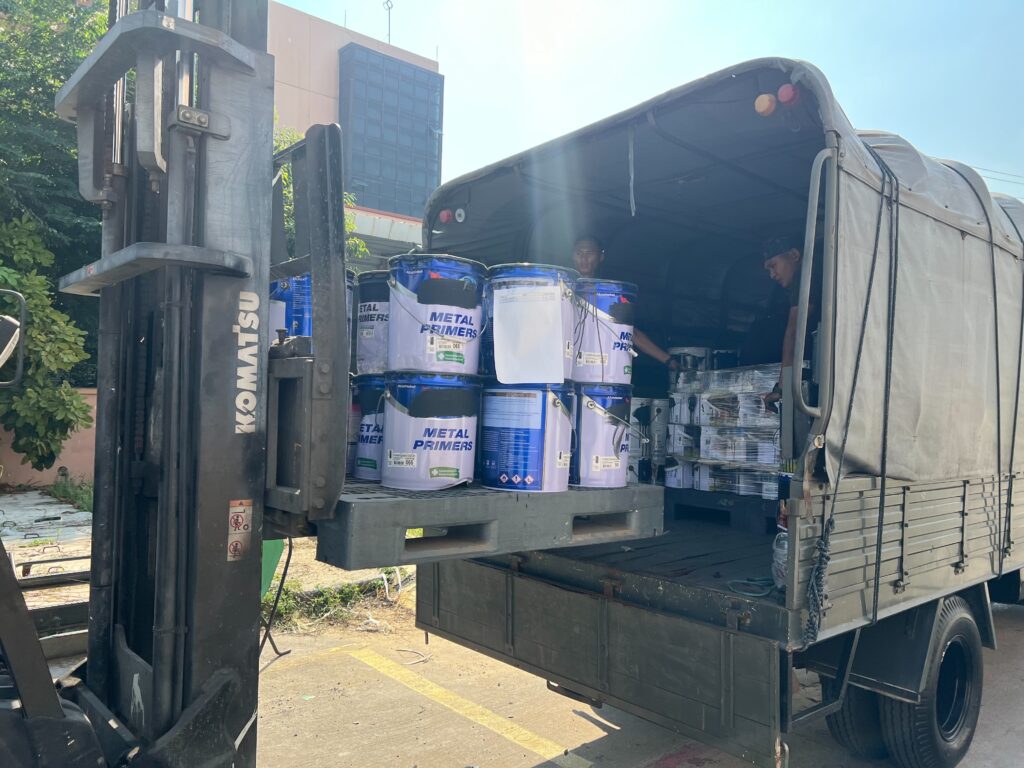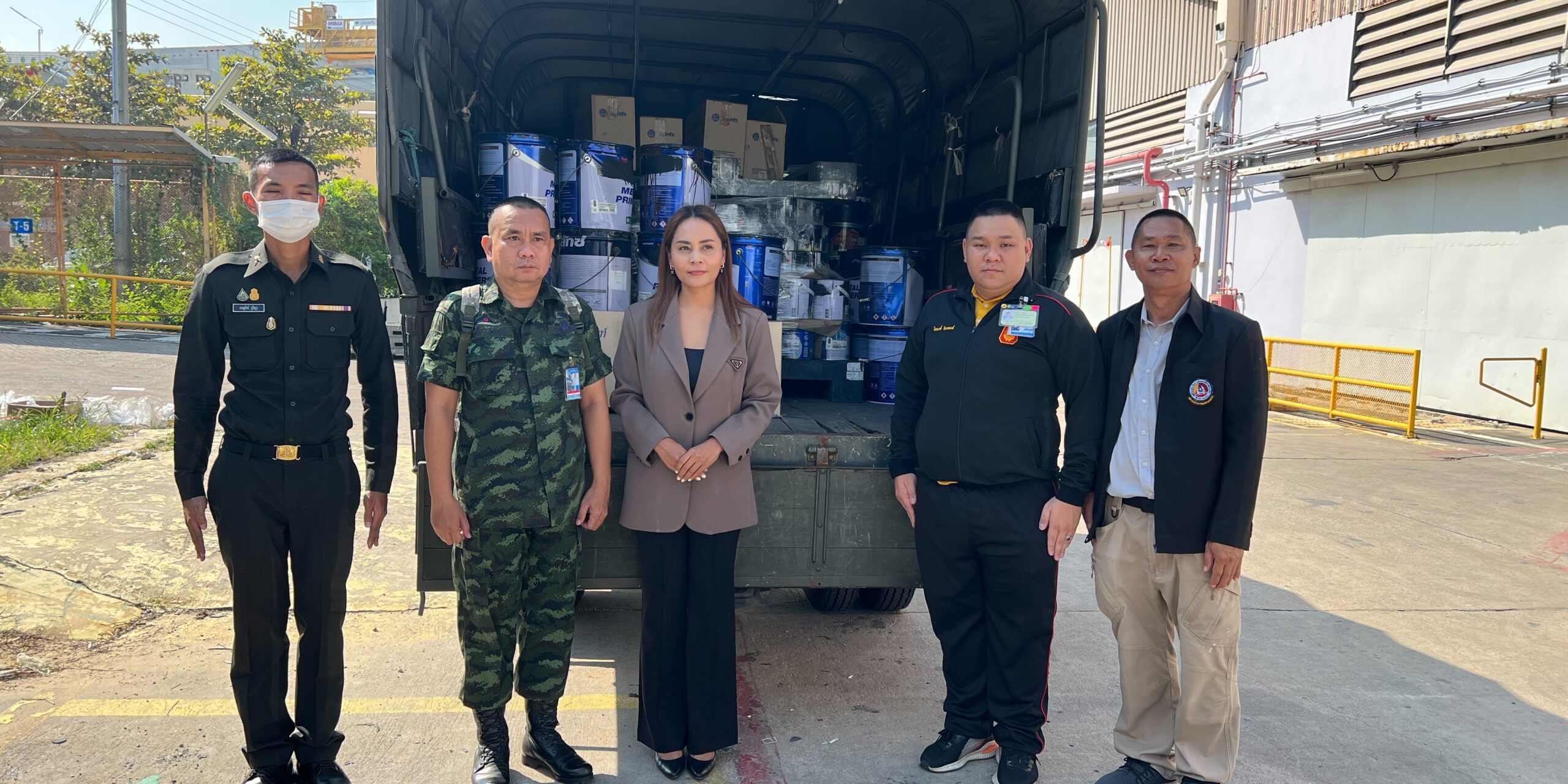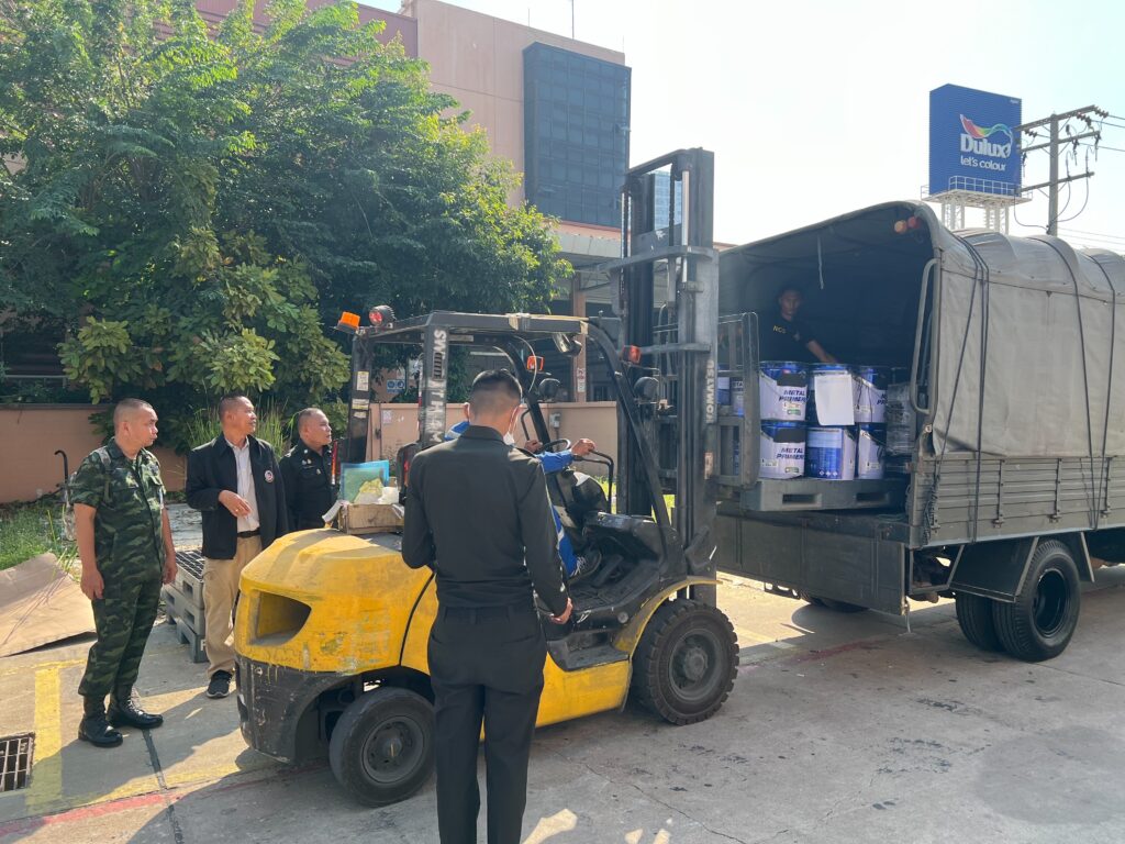 จึงได้ส่งมอบสีน้ำและสีน้ำมัน สำหรับทาภายในและภายนอกอาคารสีอะคริลิค สีทาไม้ สีทาโลหะกันสนิมให้กับหน่วยทหารต่างๆ เพื่อนำไปใช้ประโยชน์ในการ พัฒนา ปรับภูมิทัศน์ และใช้ในกิจการต่างๆ ของหน่วย รวมถึงช่วยเหลือประชาชนที่ได้รับความเดือดร้อนในพื้นที่รับผิดชอบ ดังนี้