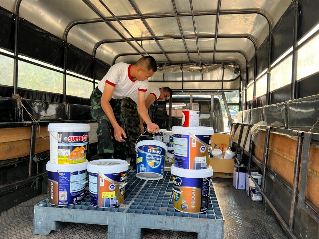 โดยขอรับการสนับสนุนสีน้ำและสีน้ำมัน สีอะคริลิค สีทาไม้ สีทาโลหะกันสนิม จาก บริษัท อั๊คโซ่ โนเบล เพ้นสท์ (ประเทศไทย) จำกัด ผ่านโครงการ “ปรับภูมิทัศน์หน่วยงานทหาร” โดยชมรมการกำลังสำรองแห่งประเทศไทย และ สภานักวิชาการ สมัชชามวลชนเพื่อความมั่นคงภายใน กองอำนวยการรักษาความมั่นคงภายในราชอาณาจักร