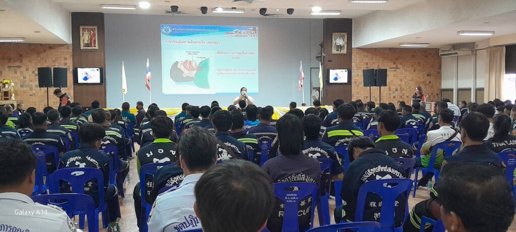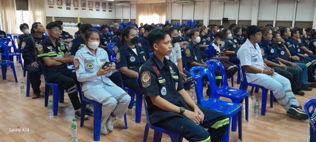 และเจ้าหน้าที่โรงพยาบาลอุตรดิตถ์ ร่วมการบรรยาย การทำงานร่วมกับศูนย์นเรนทร การแจ้งเหตุ การช่วยเหลือผู้ป่วยผู้บาดเจ็บ นำส่งโรงพยาบาล โดย น.ส.พรชนิดา แก้วเบี้ยพยาบาลวิชาชีพชำนาญการพิเศษ โรงพยาบาลอุตรดิตถ์ หัวหน้ากลุ่มงานการพยาบาล ผู้ป่วยอุบัติเหตุและฉุกเฉิน