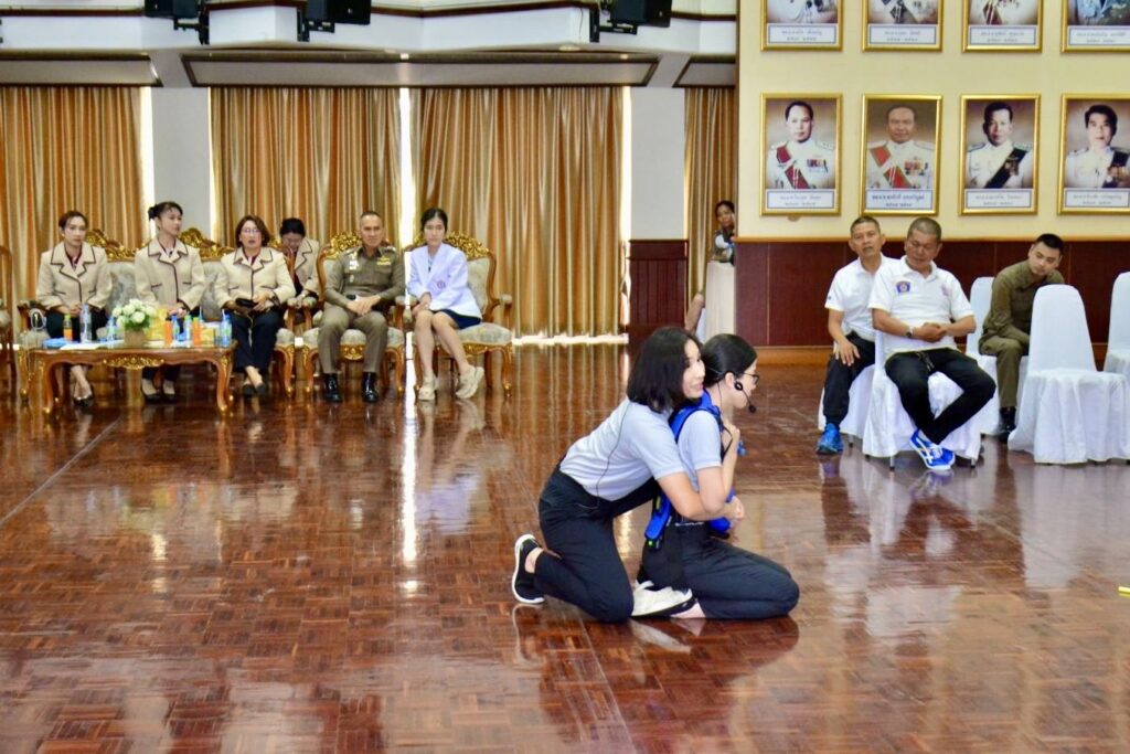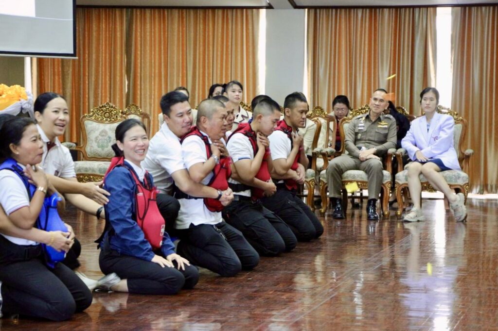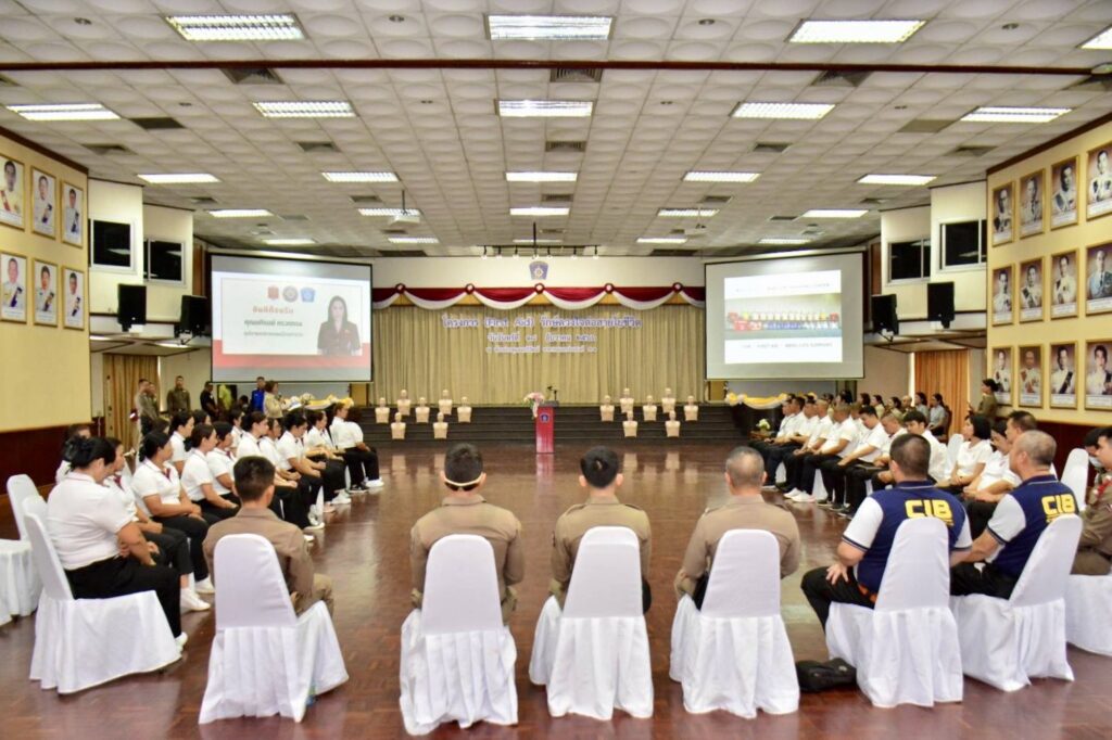 คุณณิษา ปัญญ์รักษ์ กรรมการบริหารสมาคมแม่บ้านตำรวจ,พล.ต.ท.จิรสันต์ แก้วแสงเอก ผบช.ภ.1,คุณวัชรี แก้วแสงเอก ประธานชมรมแม่บ้านตำรวจภูธรภาค 1,พล.ต.ต.กิตติ์ธเนศ ธนนันท์ทวีสิน ผบก.อก.ภ.1,คณะชมรมแม่บ้านตำรวจภูธรภาค 1 และ ข้าราชการตำรวจ ในสังกัดตำรวจภูธรภาค 1 ร่วมพิธีเปิดการอบรม โครงการ (First Aid) รักษ์ดวงใจต่อสายใยชีวิต