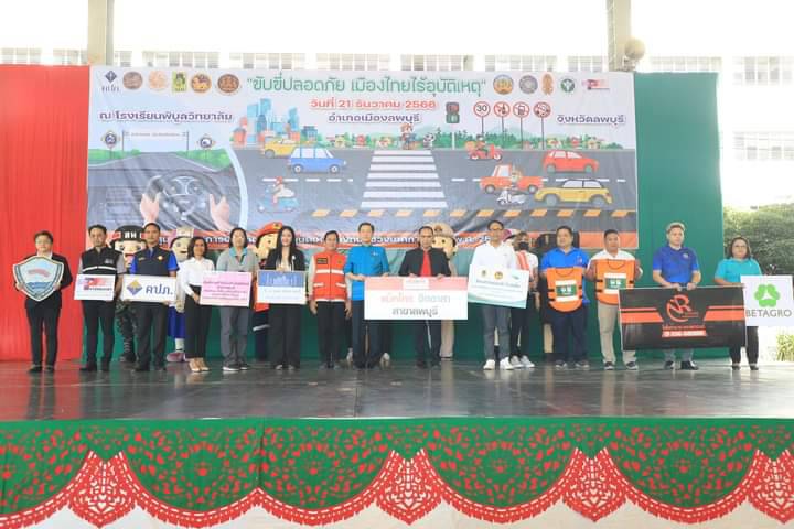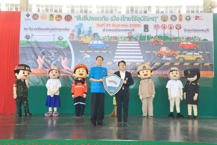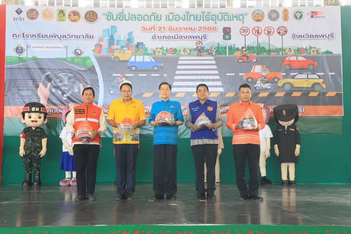 วันที่ 21 ธันวาคม 2566 เวลา 10.00 น. ที่โรงเรียนพิบูลวิทยาลัย อำเภอเมืองลพบุรี จังหวัดลพบุรี นายอำพล อังคภากรณ์กุล ผู้ว่าราชการจังหวัดลพบุรี เป็นประธานเปิดศูนย์ปฏิบัติการป้องกันและลดอุบัติเหตุทางถนนช่วงเทศกาลปีใหม่ พ.ศ.2567 งานวันป้องกันอุบัติภัยแห่งชาติ ประจำปี 2566 รวมถึงงานวันโลกรำลึกถึงผู้เสียชีวิตจากอุบัติเหตุทางถนน /และการรณรงค์ เนื่องใน วันความปลอดภัยของผู้ใช้ถนน โดยประธานในพิธีได้รับมอบสิ่งของเพื่อใช้ในการตรวจเยี่ยมจุดตรวจจากหน่วยงานต่าง ๆ จากนั้นประธานได้มอบหมวกนิรภัยในโครงการ “ครอบครัวสุขสันต์ ใส่หมวกกันน็อคกันทุกคน” จำนวน 441 ใบ ให้กับนายอำเภอทั้ง 3 อำเภอ ประกอบด้วย อำเภอเมืองลพบุรี อำเภอชัยบาดาล และ อำเภอพัฒนานิคม และอ่านสารนายกรัฐมนตรี เนื่องในวันโลกรำลึกถึงผู้เสียชีวิตจากอุบัติเหตุจราจร และยืนไว้อาลัย เป็นเวลา 60 วินาที โดยมีนายวิรพัฒน์ อ่อนสุระทุม หัวหน้าสำนักงานป้องกันและบรรเทาสาธารณภัยจังหวัดลพบุรี หัวหน้าส่วนราชการ ทหาร ตำรวจ รัฐวิสาหกิจ ภาคเอกชน จิตอาสาพระราชทาน องค์กรและมูลนิธิต่าง ๆ เข้าร่วมกิจกรรม