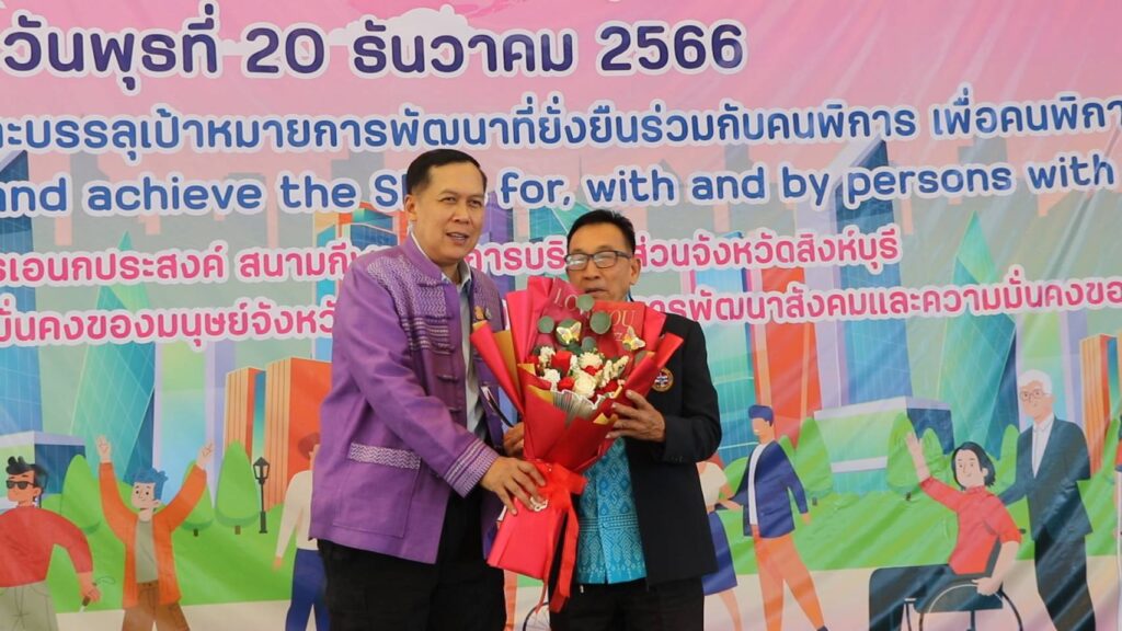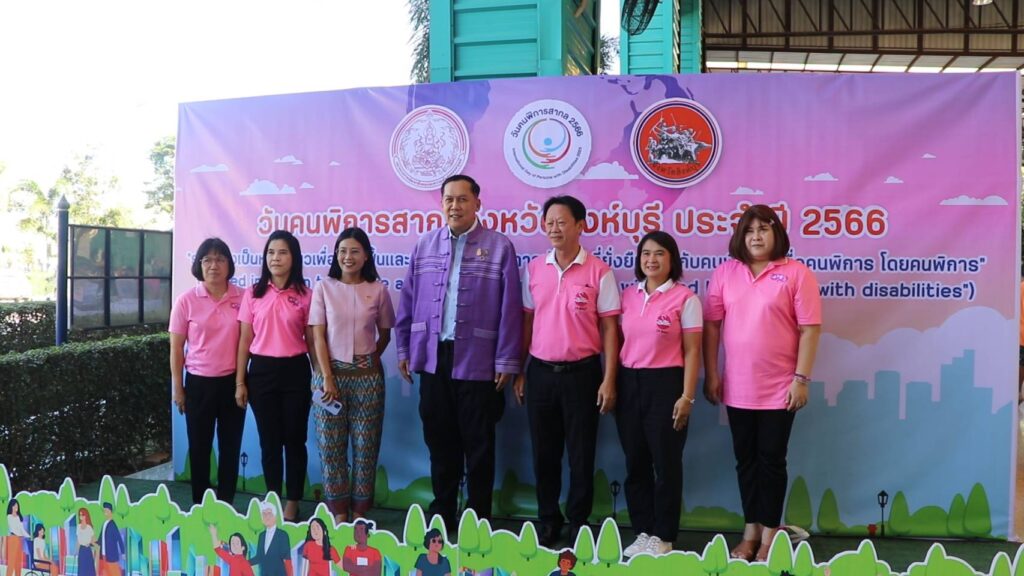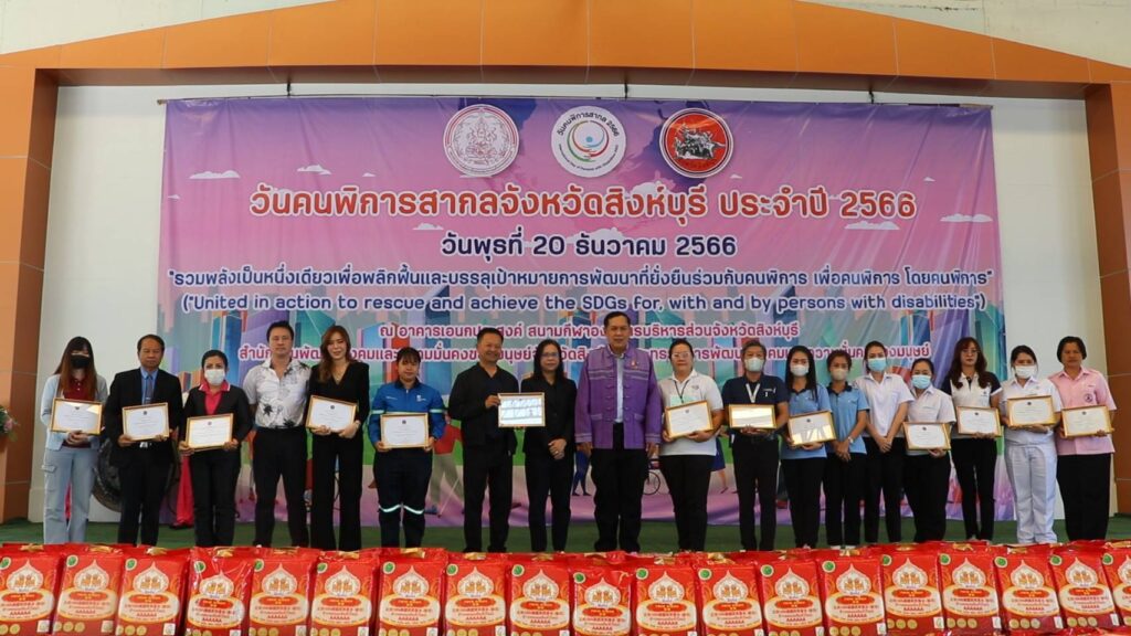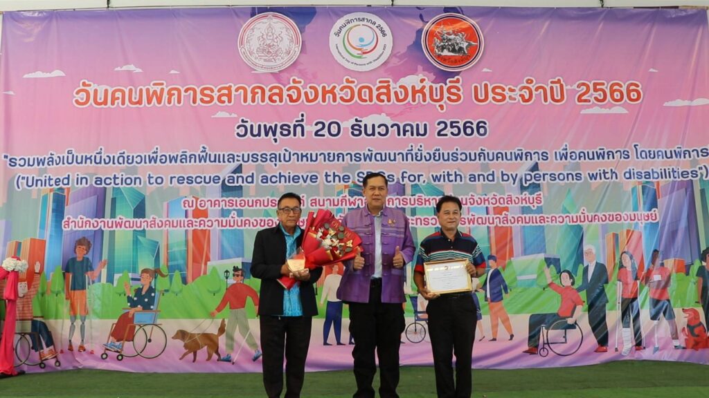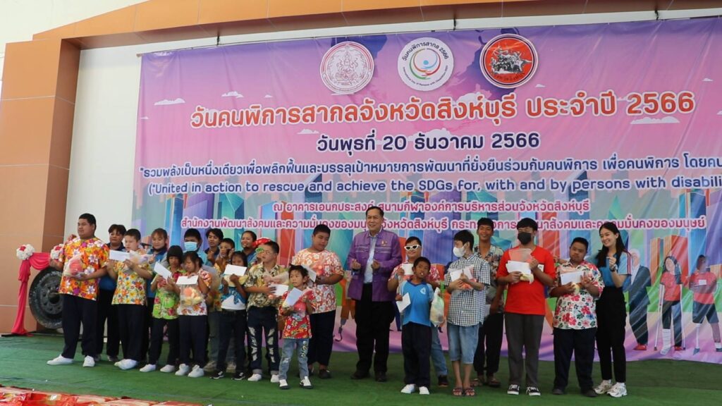 นายวราดิศร อ่อนนุช รองผู้ว่าราชการจังหวัดสิงห์บุรี เป็นประธานในพิธีเปิดงานวันคนพิการสากลจังหวัดสิงห์บุรี ปี 2566 ณ อาคารเอนกประสงค์ องค์การบริหารส่วนจังหวัดสิงห์บุรี โดยนางสาวมนชยา ปรีชา พัฒนาสังคมและความมั่นคงของมนุษย์จังหวัดสิงห์บุรี ในนามคณะกรรมการส่งเสริมและพัฒนาคุณภาพชีวิตคนพิการจังหวัดสิงห์บุรี และผู้แทนสมาคม ชมรมคนพิการ จัดกิจกรรมประกอบด้วยการมอบช่อดอกไม้และเกียรติบัตรให้แก่คนพิการต้นแบบประจำปี 2566และนายจ้างหรือสถานประกอบการที่ปฏิบัติตามกฏหมายการจ้างงานคนพิการของหน่วยงานประจำปี 2566 การมอบรถสามล้อโยกแก่คนพิการ การจัดบูธนิทรรศการของหน่วยงานและกาจัดกิจกรรมนันทนาการ ชุดการแสดงจากศูนย์การศึกษาพิเศษจังหวัดสิงหุ์บรี มีผู้เข้าร่วมงานประกอบด้วย คนพิการ ผู้ดูแลคนพิการ อาสาสมัครช่วยเหลือคนพิการ อาสาสมัครพัฒนาสังคมและความมั่นคงของมนุษย์จังหวัด หน่วยงานภาครัฐ เครือข่ายด้านคนพิการและประชาชนทั่วไป จำนวน 650 คน