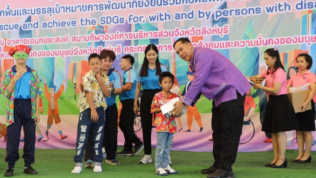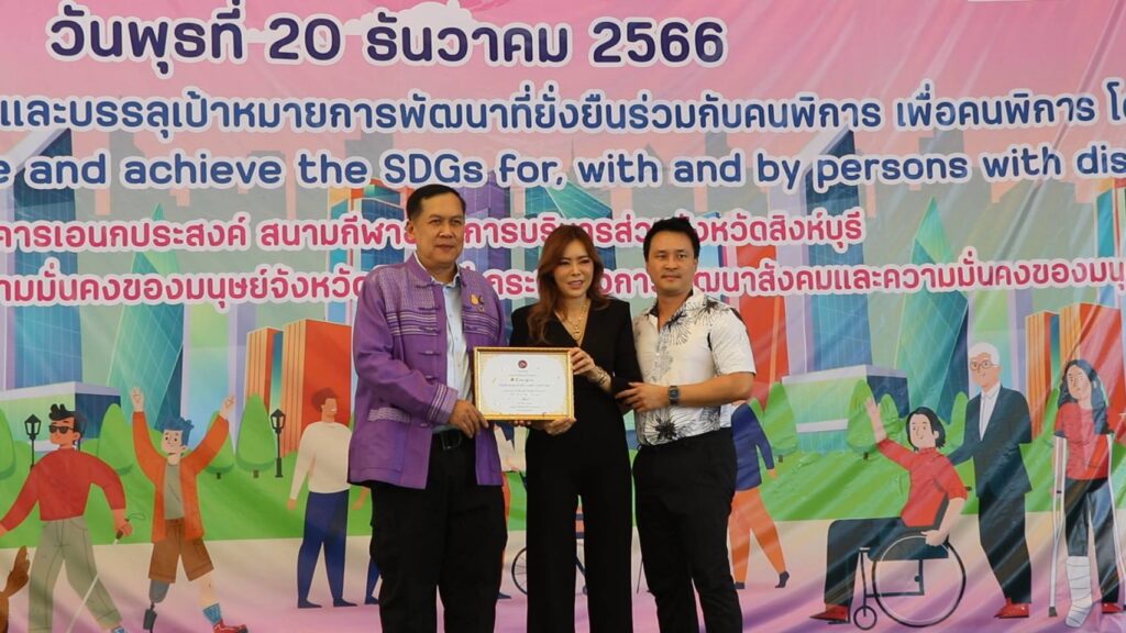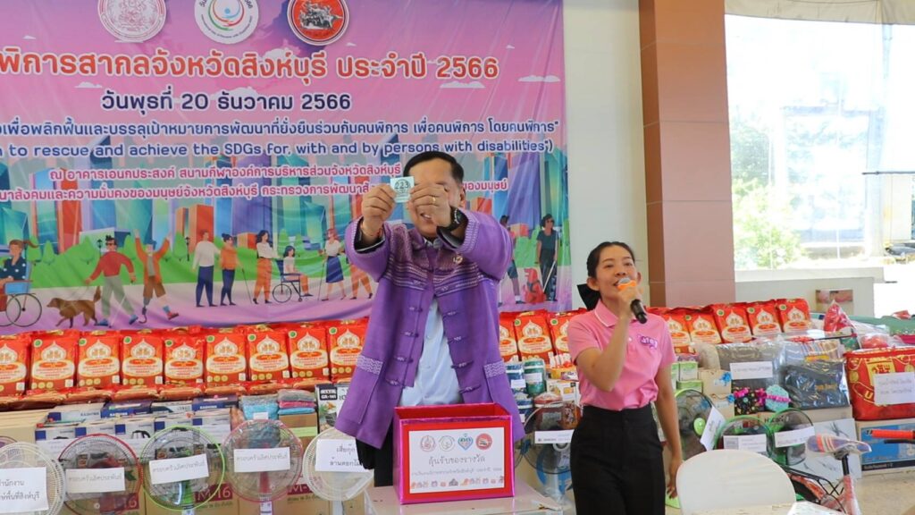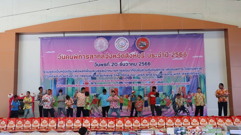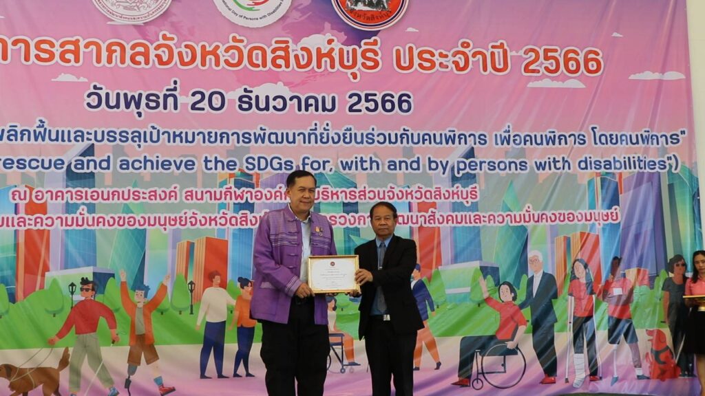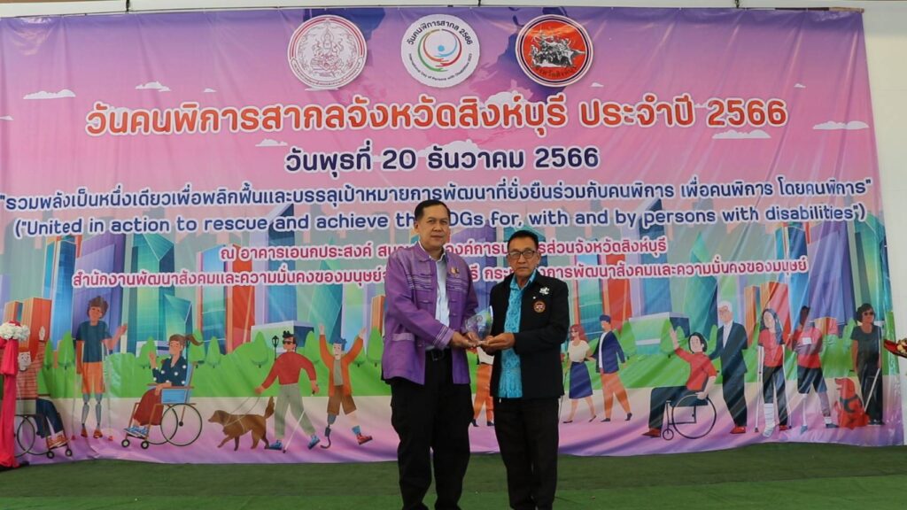นายวราดิศร อ่อนนุช รองผู้ว่าราชการจังหวัดสิงห์บุรี เป็นประธานในพิธีเปิดงานวันคนพิการสากลจังหวัดสิงห์บุรี ปี 2566 ณ อาคารเอนกประสงค์ องค์การบริหารส่วนจังหวัดสิงห์บุรี โดยนางสาวมนชยา ปรีชา พัฒนาสังคมและความมั่นคงของมนุษย์จังหวัดสิงห์บุรี ในนามคณะกรรมการส่งเสริมและพัฒนาคุณภาพชีวิตคนพิการจังหวัดสิงห์บุรี และผู้แทนสมาคม ชมรมคนพิการ จัดกิจกรรมประกอบด้วยการมอบช่อดอกไม้และเกียรติบัตรให้แก่คนพิการต้นแบบประจำปี 2566และนายจ้างหรือสถานประกอบการที่ปฏิบัติตามกฏหมายการจ้างงานคนพิการของหน่วยงานประจำปี 2566 การมอบรถสามล้อโยกแก่คนพิการ การจัดบูธนิทรรศการของหน่วยงานและกาจัดกิจกรรมนันทนาการ ชุดการแสดงจากศูนย์การศึกษาพิเศษจังหวัดสิงหุ์บรี มีผู้เข้าร่วมงานประกอบด้วย คนพิการ ผู้ดูแลคนพิการ อาสาสมัครช่วยเหลือคนพิการ อาสาสมัครพัฒนาสังคมและความมั่นคงของมนุษย์จังหวัด หน่วยงานภาครัฐ เครือข่ายด้านคนพิการและประชาชนทั่วไป จำนวน 650 คน