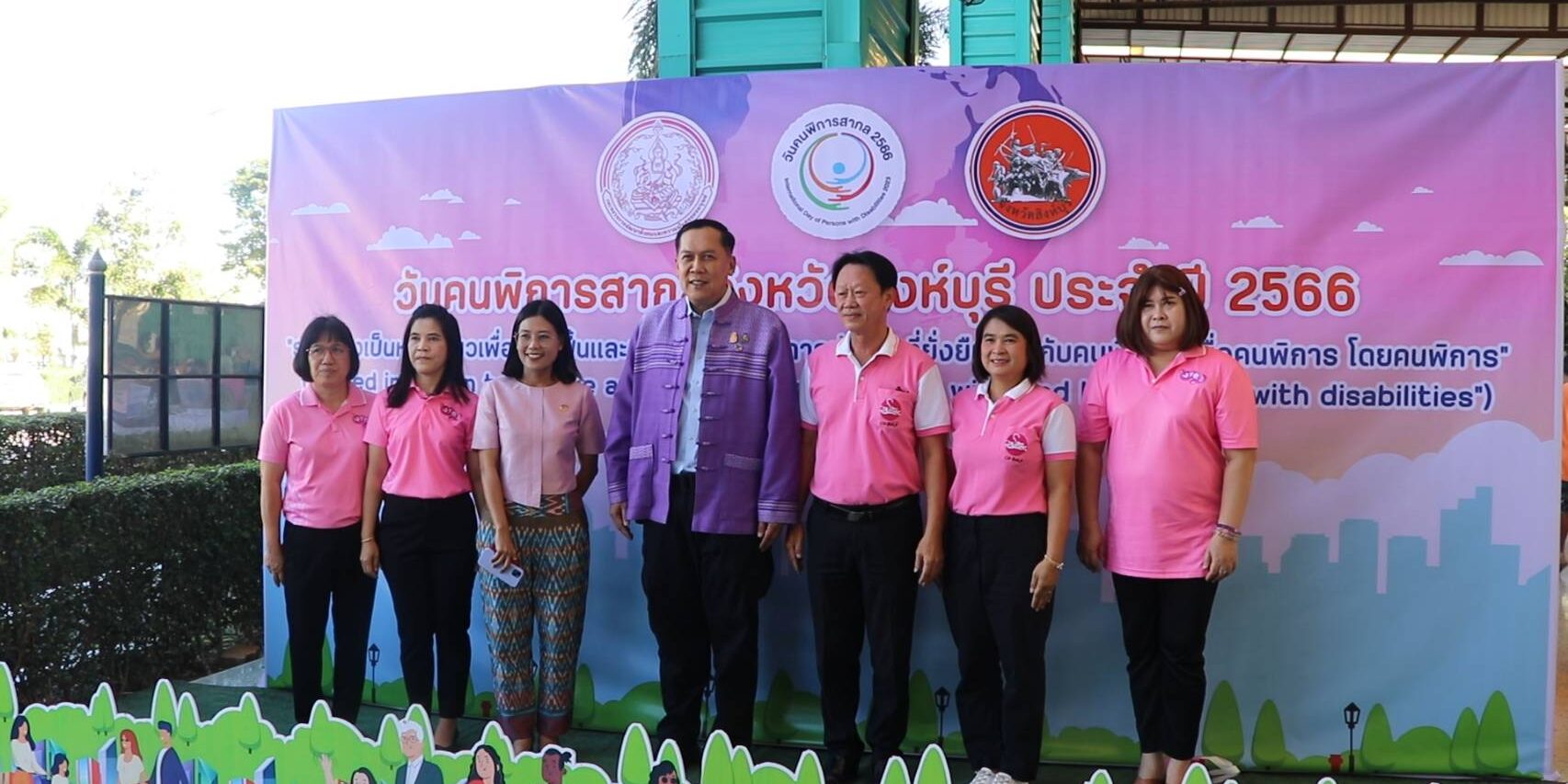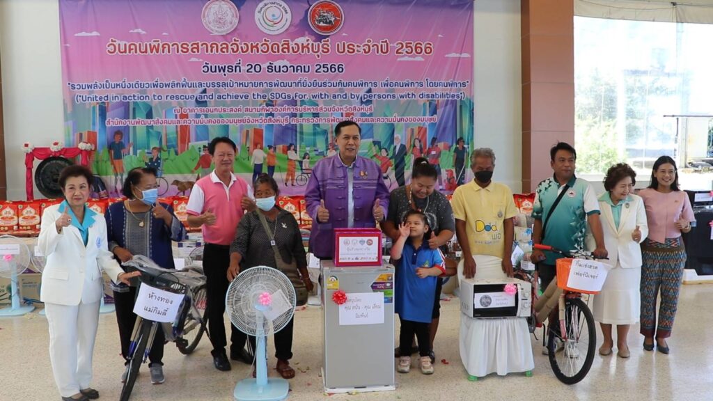 ซึ่งได้รับความร่วมมือจากคณะอนุกรรมการการส่งเสริมและพัฒนาคุณภาพชีวิตคนพิการประจำจังหวัดสิงห์บุรีและหน่วยงานราชการองค์กรปกครองส่วนท้องถิ่น จำนวน 41 แห่ง ได้จัดพาหนะรับ-ส่งคนพิการที่มาร่วมงานรวมทั้งมีสถานประกอบการ องค์กร สมาคม และอาสาสมัคร ตลอดจนหน่วยงานภาครัฐและเอกชนต่างๆสนับสนุนของขวัญปีใหม่ให้คนพิการ เพื่อให้ทุกภาคส่วนในสังคมรวมพลังขับเคลื่อนการดำเนินงานด้านคนพิการเพื่อสร้างสังคมที่น่าอยู่และเป็นธรรม ตามที่องค์การสหประชาชาติ ได้ประกาศให้วันที่ 3 ธันวาคมของทุกปีเป็นวันคนพิการสากลสำหรับจังหวัดสิงห์บุรีมีคนพิการจำนวน 7,857 คนคิดเป็นร้อยละ 3.87 ของจำนวนจังหวัดสิงห์บุรีและประเภทความพิการสูงสุด 3 ลำดับแรกได้แก่พิการทางการเคลื่อนไหวหรือทางร่างกายจำนวน 3,953 คนพิการทางการได้ยินหรือสื่อความหมาย จำนวน 1,365 คน และพิการทางจิตหรือพฤติกรรม จำนวน 1,084 คนตามลำดับ