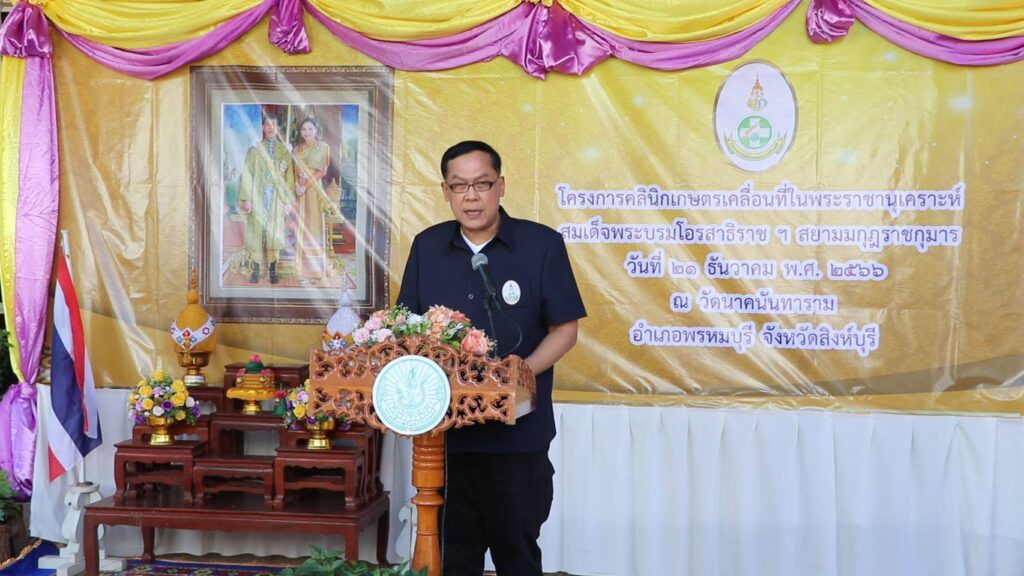 นายวราดิศร อ่อนนุช รองผู้ว่าราชการจังหวัดสิงห์บุรี รักษาราชการแทน ผู้ว่าราชการจังหวัดสิงห์บุรี เป็นประธานในพิธีเปิดโครงการคลินิกเกษตรเคลื่อนที่ ครั้งที่ 1 ประจำปีงบประมาณ พ.ศ. 2567 ณ วัดนาคนันทาราม ตำบลบ้านแป้ง อำเภอพรหมบุรี จังหวัดสิงห์บุรี โดย นายปัทพงศ์ สารบรรณ์ เกษตรจังหวัดสิงห์บุรี พร้อมหน่วยงานในสังกัดกระทรวงเกษตรและสหกรณ์ จังหวัดสิงห์บุรี ดำเนินการจัดโครงการ คลินิกเกษตรเคลื่อนที่ อันเป็นโครงการ ฯ ที่พระบาทสมเด็จพระวชิรเกล้าเจ้าอยู่หัว เมื่อครั้งทรงดำรงพระราชอิสริยยศเป็นสมเด็จพระบรมโอรสาธิราช ฯ สยามมกุฎราชกุมาร ทรงมีพระชนมายุครบ 50 พรรษา ในพุทธศักราช 2545 กระทรวงเกษตรและสหกรณ์จึงกราบบังคมทูลขอพระราชทานพระราชานุญาต จัดทำโครงการคลินิกเกษตรเคลื่อนที่ถวาย และขอรับพระมหากรุณาธิคุณให้โครงการ ฯ อยู่ในพระราชานุเคราะห์ของสมเด็จพระบรมโอรสาธิราช ฯ สยามมกุฎราชกุมาร โดยมีวัตถุประสงค์ เพื่อให้การบริการแก่เกษตรกร ในการแก้ไขปัญหาต่าง ๆ ด้านการเกษตร เเบบรวดเร็ว สอดคล้องกับพื้นที่และความต้องการของเกษตรกร ซึ่งมีการบูรณาการความร่วมมือกันระหว่างหน่วยงานวิชาการ หน่วยงานส่งเสริม และหน่วยงานภาคีที่เกี่ยวข้อง โดยร่วมกันพัฒนาฟื้นฟูเกษตรกรให้สามารถประกอบอาชีพทางการเกษตรได้อย่างมีประสิทธิภาพ มั่นคงและยั่งยืน