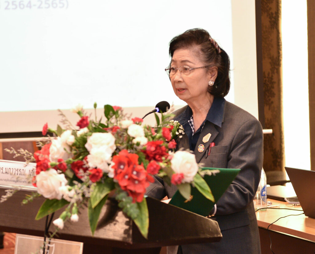 ถัดมา ดร.วิภารัตน์ฯ ปาฐกถาพิเศษ เรื่อง (วช.) และ การประเมินผลสัมฤทธิ์งานวิจัย เพื่อขับเคลื่อนสู่การใช้ประโยชน์ กล่าวว่า (วช.) มีวิสัยทัศน์ที่สำคัญ คือ (วช.) เป็นผู้นำการสร้างสรรค์งานวิจัยและนวัตกรรมสู่การใช้ประโยชน์ในทุกมิติ เพื่อยกระดับขีดความสามารถในการแข่งขันของประเทศให้ทันต่อสถานการณ์โลก โดยมุ่งเน้นนำผลผลิตที่ได้จากงานวิจัยในทุกระดับมาวิเคราะห์ถึงความพร้อมใช้และเชื่อมโยงกับกลุ่มเป้าหมายที่เป็นผู้ใช้ประโยชน์ทั้งประชาชน หน่วยงานภาครัฐและภาคเอกชน เพื่อให้เกิดผลลัพธ์และผลกระทบในวงกว้าง โดยพิจารณาทั้งความเป็นไปได้ทางวิชาการ ที่สามารถเชื่อมโยงการนำผลงานวิจัยและนวัตกรรมไปใช้ประโยชน์ในเชิงพาณิชย์ สังคม และสาธารณประโยชน์ รวมทั้งเกิดทรัพย์สินทางปัญญาจากการวิจัยและนวัตกรรมที่สามารถสร้างผลประโยชน์แก่ประเทศ ตามหลักพระราชบัญญัติส่งเสริมการใช้ประโยชน์ผลงานวิจัยและนวัตกรรม พ.ศ.2564 เพื่อให้เกิดความสมดุลระหว่างประโยชน์ของผู้เป็นเจ้าของผลงานวิจัยและนวัตกรรมและประโยชน์ส่วนรวมเป็นสำคัญ