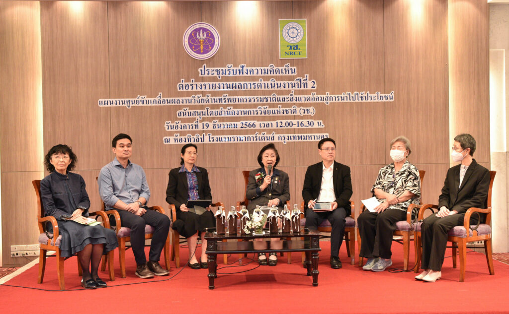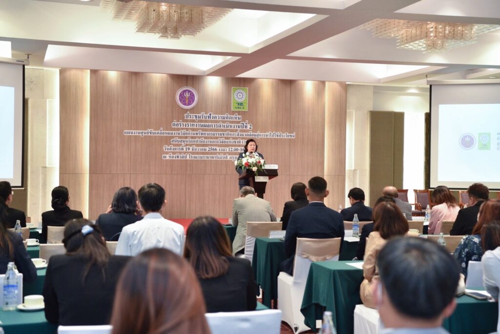 เมื่อวันที่ 19 ธันวาคม 2566 สำนักงานการวิจัยแห่งชาติ (วช.) กระทรวงการอุดมศึกษา วิทยาศาสตร์ วิจัยและนวัตกรรม (อว) จัดประชุมรับฟังความคิดเห็นผลการดำเนินงาน “ศูนย์ขับเคลื่อนผลงานวิจัยด้านทรัพยากรธรรมชาติและสิ่งแวดล้อมสู่การนำไปใช้ประโยชน์” พร้อมรับฟังความคิดเห็นและข้อเสนอแนะ เพื่อพัฒนารายงานผลการดำเนินงานต่อไป โดยมี ดร.วิภารัตน์ ดีอ่อง ผู้อำนวยการสำนักงานการวิจัยแห่งชาติ เป็นประธานเปิดการประชุมรับฟังความคิดเห็นฯ พร้อมทั้งปาฐกถาพิเศษ เรื่อง “(วช.) และ การประเมินผลสัมฤทธิ์งานวิจัย เพื่อขับเคลื่อนสู่การใช้ประโยชน์” โดย รศ.ดร.นภาวรรณ นพรัตนราภรณ์ ผู้อำนวยการแผนงาน “ศูนย์ขับเคลื่อนผลงานวิจัยด้านทรัพยากรธรรมชาติและสิ่งแวดล้อมสู่การนำไปใช้ประโยชน์” กล่าวรายงานผลการดำเนินงาน พร้อมด้วยที่ปรึกษาแผนงานศูนย์ขับเคลื่อนฯ คณะผู้ตรวจสอบทางวิชาการ ผู้บริหาร (วช.) และคณะนักวิจัยเข้าร่วมกิจกรรม ณ ห้องทิวลิป โรงแรมรามาการ์เด้นส์ กรุงเทพฯ