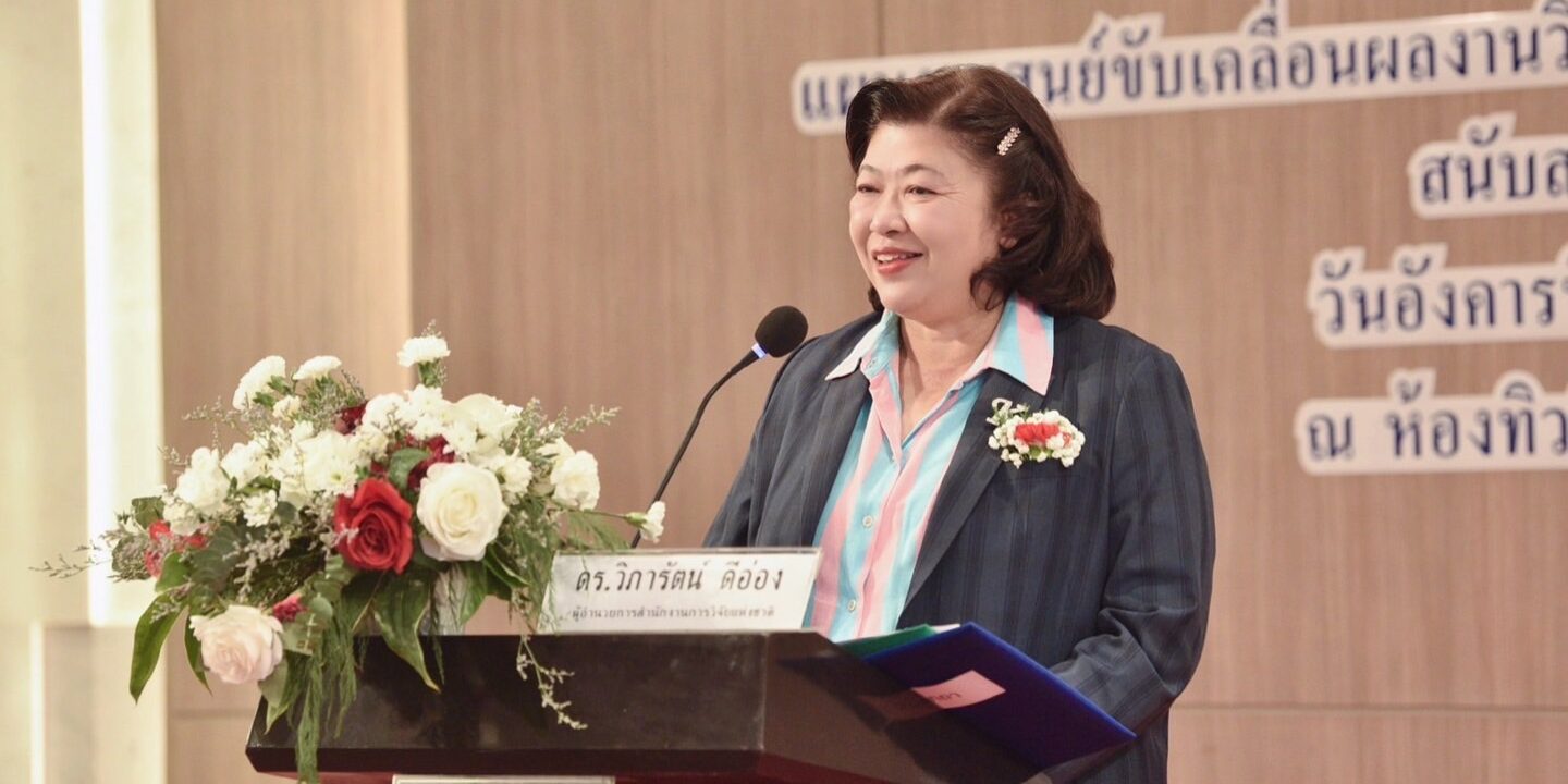 ดร.วิภารัตน์ ดีอ่อง ผู้อำนวยการสำนักงานการวิจัยแห่งชาติ (ผอ.วช.) กล่าวว่า กิจกรรมเวทีสาธารณะครั้งนี้ เป็นการรายงานผลการดำเนินงานในรอบ 2 ปี ของแผนงาน “ศูนย์ขับเคลื่อนผลงานวิจัยด้านทรัพยากรธรรมชาติและสิ่งแวดล้อมสู่การนำไปใช้ประโยชน์” รวมทั้ง เป็นการเผยแพร่ผลการดำเนินงานในภาพรวม และรับฟังความคิดเห็นจากผู้เกี่ยวข้อง อันจะนำไปสู่แนวทางในการพัฒนาปรับปรุงข้อมูลให้มีความเหมาะสมสมบูรณ์ และเป็นแนวทางในการดำเนินงาน โดยที่ (วช.) ซึ่งปัจจุบันให้ความสำคัญกับระบบวิทยาศาสตร์ วิจัยและนวัตกรรม (ววน.) ภายใต้กระทรวงการอุดมศึกษา วิทยาศาสตร์ วิจัยและนวัตกรรม (อว.) เพื่อร่วมส่งเสริมสนับสนุนการวิจัยพัฒนาและนวัตกรรมของประเทศ ในหลายแผนงานวิจัยที่สำคัญมาอย่างต่อเนื่อง อาทิ แผนงานท้าทายไทย แผนงานมุ่งเป้า ทั้งในลักษณะชุดโครงการ แผนงานขนาดใหญ่จำนวนมาก โดยมุ่งเน้นการทำงานแบบบูรณาการเป็นภาคีเครือข่าย ทั้งในส่วนของผู้บริหารแผนงาน ผู้ขับเคลื่อนในระบบ เพื่อให้เกิดผลสำเร็จของการดำเนินงาน และผู้ที่เกี่ยวข้องกับการใช้ประโยชน์ จึงเป็นที่มาของการสนับสนุนให้มีการจัดตั้งศูนย์ขับเคลื่อนการใช้ประโยชน์งานวิจัยด้านทรัพยากรธรรมชาติและสิ่งแวดล้อม ในการดำเนินงานในส่วนต่อขยายด้านการประเมินผลงานวิจัยและนวัตกรรมที่นอกเหนือจากการติดตามประเมินโครงการรายปี โดยเป็นการติดตามประเมินหลังโครงการเสร็จสิ้น เพื่อให้เห็นภาพรวมผลสำเร็จของผลผลิตจากงานวิจัยในมิติที่กว้างขึ้น ซึ่ง (วช.) คาดหวังว่าการดำเนินงานของแผนงานศูนย์ขับเคลื่อนฯ จะส่งมอบชุดข้อมูลที่เป็นมาตรฐาน และเป็นต้นแบบการทำงานในแผนงานอื่นๆ ที่ (วช.) ให้การสนับสนุนต่อไป