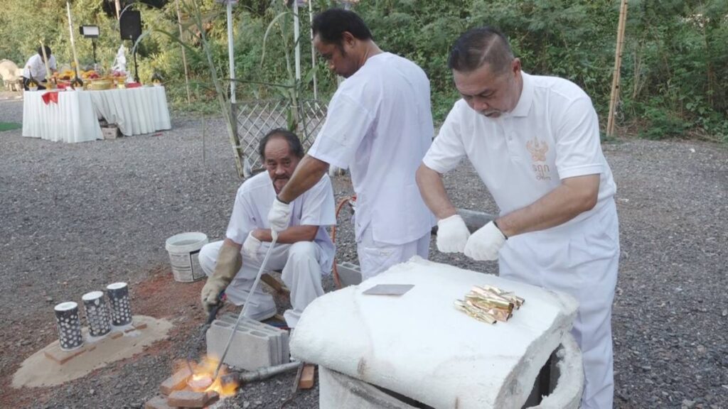 และคณะสงฆ์ ร่วมทำพิธีโดยใช้มวลสารจากเกจิอาจารย์หลายท่านได้แก่ พระภาวนาวิสุทธิโสภณ เจ้าคณะจังหวัดสมุทรสงคราม เเละเจ้าอาวาสวัดประดู่,พระเมธีวัชรประชาทร (หลวงพ่อเเดง) รองเจ้าคณะอำเภออัมพวา เจ้าอาวาส วัดอินทาราม,ท่านเจ้าคุณพระประชานาถมุนี วิ (อานันท์ อานนฺโท) วัดดอนจั่น เชียงใหม่ และ พระครูวิศิษฎ์พิทยาคม (วราห์ ปุญฺญวโร) เจ้าอาวาสวัดโพธิ์ทอง จอมทอง กทม