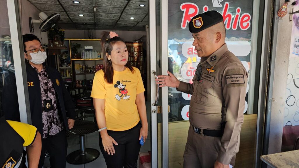 ร้านที่มีการร้องเรียนพบเปิดเป็นร้านเสริมสวยชื่อร้าน Richic ตั้งอยู่เลขที่ 51/129 หมู่7 ตั้ง.ท่าทราย อ.เมืองฯ จว.สมุทรสาคร พบน.ส.บัวลา บุตรงาม อายุ 44 ปี แสดงตนเป็นช่างทำผมเอง โดยไม่มีแรงงานต่างด้าวมาเป็นช่างที่ร้านแต่อย่างใด ได้ชี้แจงในข้อกฏหมายว่าอาชีพเสริมสวยเป็นอาชีพต้องห้ามของแรงงานต่างด้าว ห้ามนำแรงงานต่างด้าวมาประกอบอาชีพเสริมสวย และได้ร่วมกับชุดบูรณาการตรวจสอบร้านเสริมสวยในบริเวณในซอยทั้งหมด จำนวน 18 ร้าน ไม่พบว่ามีแรงงานต่างด้าวมาประกอบอาชีพเปิดร้าน และเป็นช่างเสริมสวยแต่อย่างใด มีแต่ลูกค้าที่มาใช้บริการที่เป็นแรงงานต่างด้าว พร้อมทั้งได้ประชาสัมพันธ์ให้ผู้ประกอบการทราบในข้อกฎหมายการจ้างแรงงานต่างด้านทำงาน และจะได้ร่วมกับหน่วยงานที่เกี่ยวข้องกวดขันจับกุมแรงงานต่างด้าวที่ลักลอบทำงานผิดกฎหมายอย่างเข้มงวดต่อไป