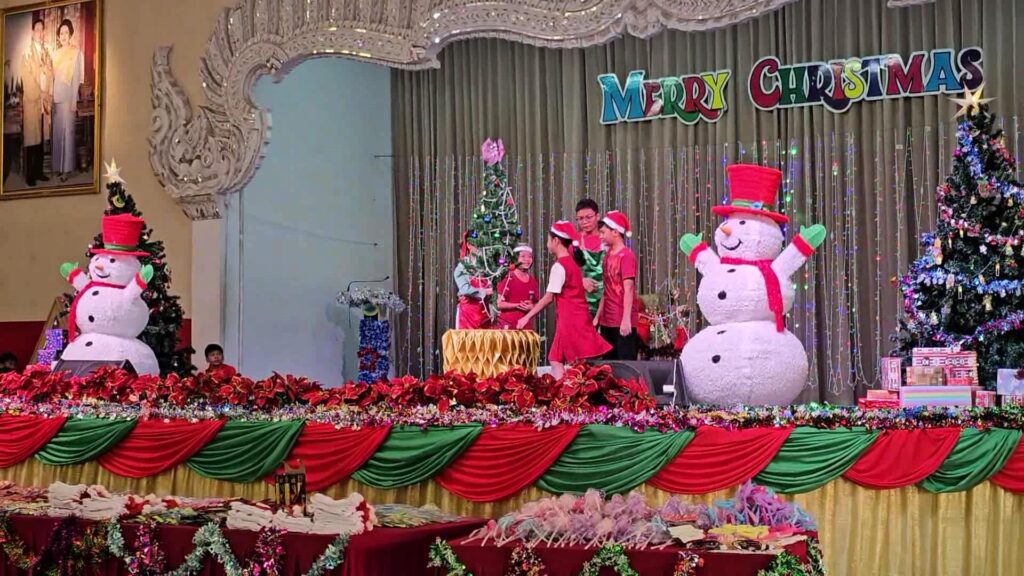 พร้อมทั้ง จัดกิจกรรม การพูดสุนทรพจน์ภาษาอังกฤษ Impromptu Speech ในหัวข้อ Myself การเล่านิทานภาษาอังกฤษ Story Telling เทคนิคการจัดแต่งต้นคริสต์มาส ของเด็กนักเรียนในระดับชั้นประถมศึกษา การประกวดการวาดภาพในจิตนการเกี่ยวกับ คริสต์มาส สำหรับนักเรียนระดับชั้นอนุบาล และ ระดับชั้นประถมศึกษา การแสดง ประกอบเพลงของนักเรียน การแสดงละครเวทีความเป็นมาของพระเยซูเจ้า และมอบของขวัญให้แก่เด็กๆ ที่เข้าร่วมกิจกรรม บรรยากาศเป็นไปอย่างสนุกสนาน