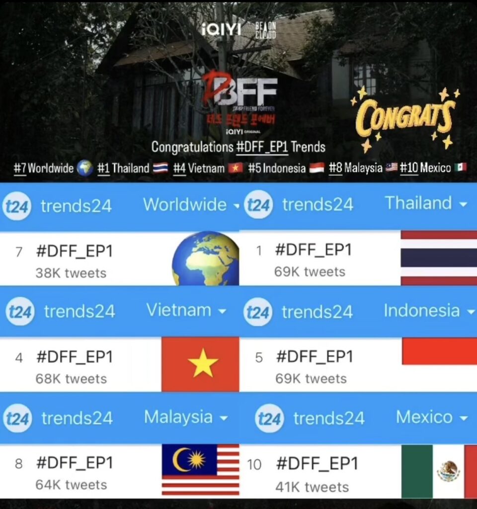,คอปเปอร์ ภูริวัจน์,เจเจ ปฏิภาณ,ฟูไอซ์ ธนวัตร,มีโอ เอเธนส์,บั๊ม ภวัต ,เจ็ท เจษฎากร,อัส นิติธร,บาร์โค้ด ตฤณสิษฐ์” และ “เจเจ ชลัช” มาปล่อยของรัวๆ เพิ่มดีกรีความฟินสิบเต็มสิบไม่หัก จากผลงานการกำกับของ “มะเดี่ยว-ชูเกียรติ ศักดิ์วีระกุล” ผู้กำกับสายวายคนดัง ร่วมด้วย “ฉันทนา ทิพย์ประชาติ” เติมเต็มความสนุกมงลงสุดๆ และเพียงออกอากาศได้เพียงหนึ่งอีพี หลายเสียงลงมิติว่า ซีรีส์ “เพื่อนตาย” DFF (Dead Friend Forever) เรื่องนี้ตีความใหม่ทันสมัย ทั้งเสียง สี เสียง ช่วยบิ้วท์อารมณ์ โปรดักชั่นทำถึง! จนชาวโลกออนไลค์ถูกอกถูกใจ ร่วมด้วยช่วยปั่น ติดแฮชแท็กซีรีส์ฉ่ำๆ ทั้งในไทยและต่างประเทศผ่าน X Twitter สนั่นโลกออนไลน์