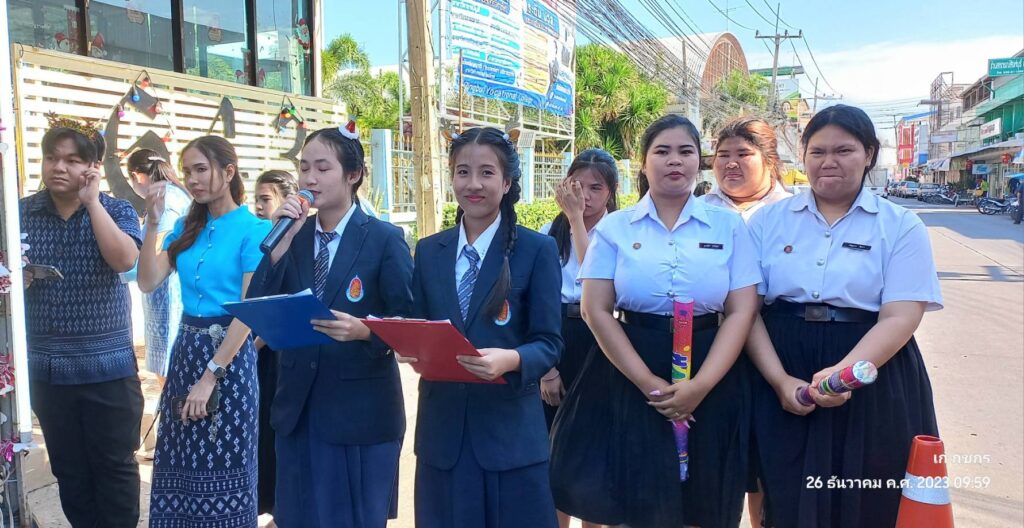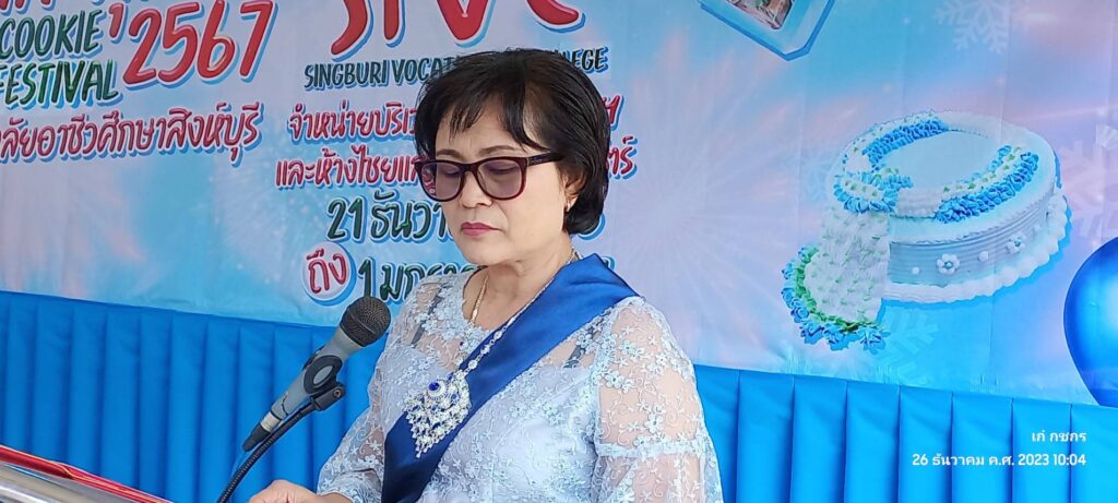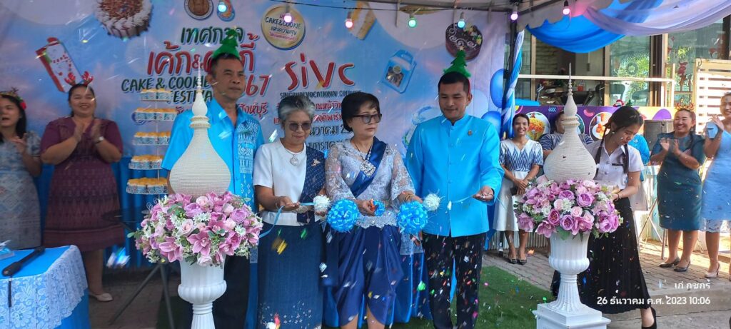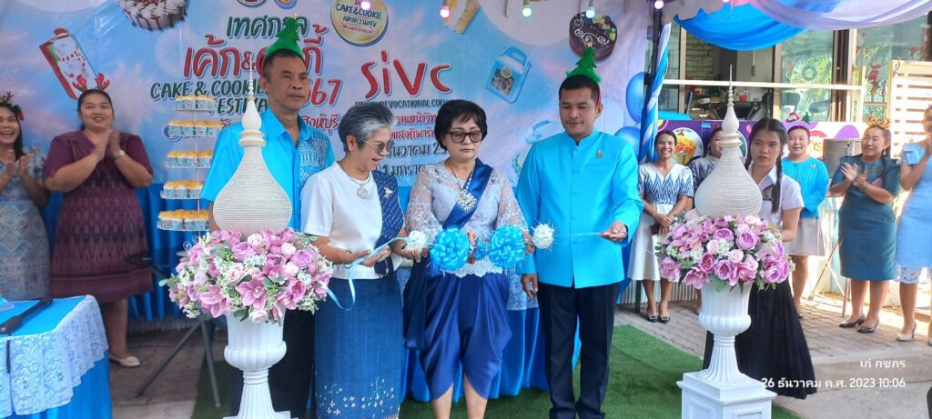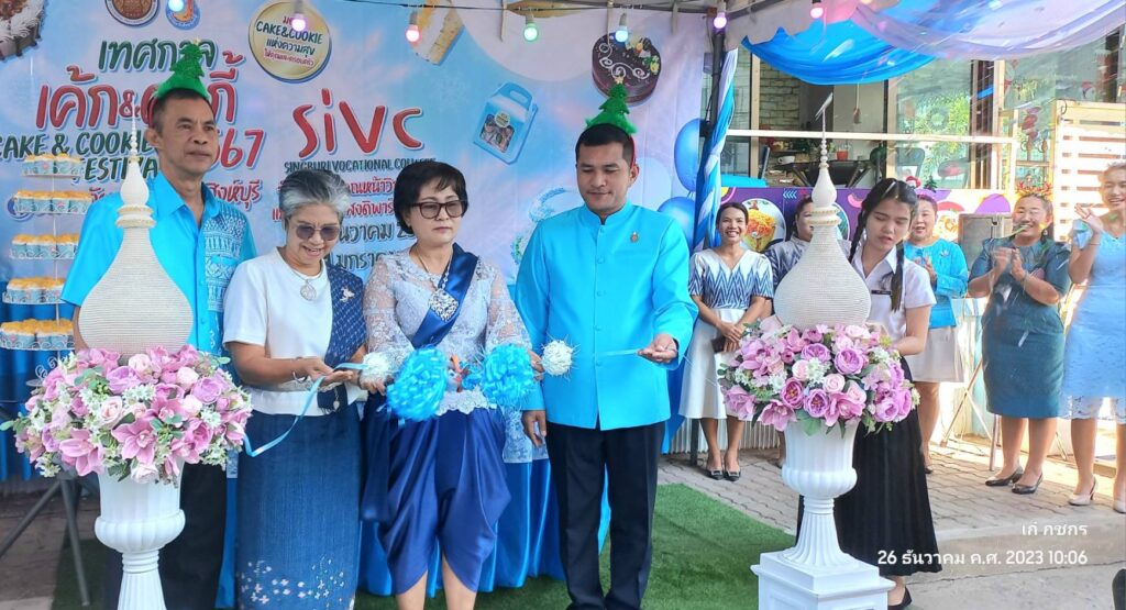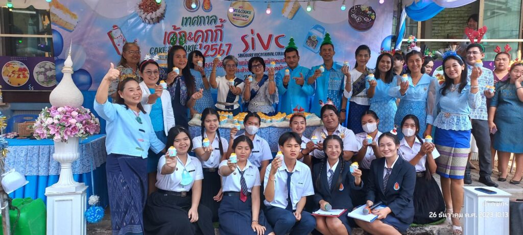 พร้อมด้วย คณะผู้บริหาร คณะครู เจ้าหน้าที่ และนักเรียน นักศึกษา ร่วมพิธีเปิดการจัดกิจกรรมโครงการผลิตและจำหน่ายเค้กและคุกกี้ เทศกาลปีใหม่ 2567 ระหว่างวันที่ 21 ธันวาคม 2566 ถึงวันที่ 1 มกราคม 2566 โดยจัดจำหน่ายด้วยกัน 2 แห่ง คือ ห้างไชยแสงดีพาร์ทเม้นท์ สโตร์และ หน้าวิทยาลัยอาชีวศึกษาตั้งแต่วันที่ 21 ธ.ค.66 – 1 ม.ค.67 เพื่อเป็นการเสริมสร้างประสบการณ์งานวิชาชีพในระหว่างเรียนให้แก่นักเรียนนักศึกษาอย่างเป็นรูปธรรมและสอดคล้องกับนโยบายสำนักงานคณะกรรมการการอาชีวศึกษา กระทรวงศึกษาธิการและยังเป็นการยกระดับคุณภาพการจัดการอาชีวศึกษา เพื่อพัฒนาทักษะอาชีพในทักษะอนาคตโดยการ Up – Skill Re -Skill New – Skill และการเป็นผู้ประกอบการเสริมสร้างประสบการณ์งานอาชีพและการปฏิบัติงานจริงแก่นักเรียน นักศึกษาทุกระดับชั้น ทุกแผนกวิชา ในลักษณะบูรณาการวิชาชีพอีกด้วย
