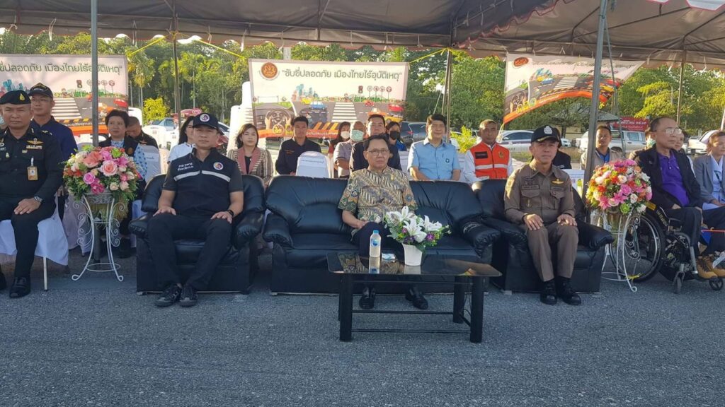 ทั้งนี้ ร้อยโท ทศพล ไชยโกมินทร์ ผู้ว่าราชการจังหวัดกาญจนบุรี พร้อมคณะได้ร่วมกันปล่อยขบวนรถรณรงค์ขับขี่ปลอดภัย เพื่อประชาสัมพันธ์รณรงค์กระตุ้นเตือนประชาชนในการสร้างจิตสำนึกการใช้รถใช้ถนนให้ปฏิบัติตามกฎจราจร ทั้งการสวมหมวกนิรภัย คาดเข็มขัดนิรภัยขณะขับขี่ ขับรถด้วยความเร็วไม่เกินที่กฎหมายกำหนด เมาไม่ขับ และการมีน้ำใจต่อกันกับเพื่อนร่วมทางเพื่อความปลอดภัยต่อทั้งตนเองและผู้อื่น ซึ่งหากทุกคนปฏิบัติตามจะสามารถทำให้อุบัติเหตุลดลง และไม่เกิดความสูญเสียต่อชีวิตและทรัพย์สินของประชาชน