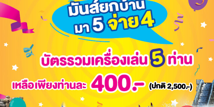 นางสาวรัสรินทร์ มิลินวรพัฒน์ ผู้จัดการฝ่ายการตลาดสวนสนุกดรีมเวิลด์ เปิดเผยว่าช่วงเทศกาลแห่งความสุข ส่งท้ายปีเก่า ต้อนรับปีใหม่ 2567 สวนสนุกดรีมเวิลด์ได้เตรียมแคมเปญสุดพิเศษ เพื่อมอบแก่ลูกค้าที่มาเที่ยวดรีมเวิลด์ โดยตั้งแต่ 29 ธ.ค. 66 – 1 ม.ค. 67 รับส่วนลดพิเศษ “มันส์ยกบ้านมา 5 จ่าย 4” ซื้อบัตรรวมเครื่องเล่น 5 ท่าน เหลือเพียงท่านละ 400 บาท จากปกติราคา 2,500 บาท งานนี้เที่ยวสนุก ส่งท้ายปีไปเลย