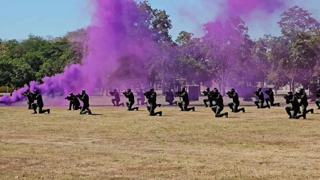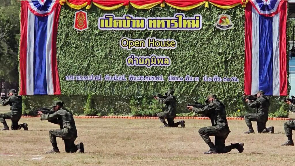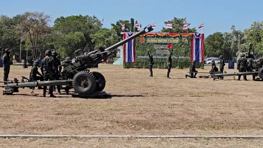 พลตรี พิศิษฐ ปัญญานะ ผู้บัญชาการศูนย์การทหารปืนใหญ่ เป็นประธานกล่าวให้การต้อนรับญาติทหารใหม่ ผลัดที่ 2 ประจำปี 2566 ทั้ง 6 หน่วยฝึก ภายในหน่วยขึ้นตรง ศูนย์การทหารปืนใหญ่ ค่ายภูมิพลฯ จ.ลพบุรี ตามโครง open house “ เปิดบ้านทหารใหม่ ค่ายภูมิพลฯ ” พร้อมนำญาติทหารใหม่ ซึ่งเดินทางมาจากภูมิลำเนาต่างๆ กว่า 700 คน เข้ารับชมการแสดงขีดความสามารถของน้อง ๆ ทหารหารใหม่ หลังผ่านการฝึกมาอย่างหนัก มาตลอด 7 สัปดาห์ ซึ่งประกอบด้วย การยิงปืนฉับผลัน , การไหว้ครูมวยไทย , การเคลื่อนย้ายที่ตั้งยิงของอาวุธปืนใหญ่สนาม ซึ่งได้รับความสนใจจากญาติทหารใหม่เป็นอย่างมาก ที่ได้เห็นความเปลี่ยนแปลงของบุตรหลานตนเอง เมื่อเข้ามารับราชการทหาร