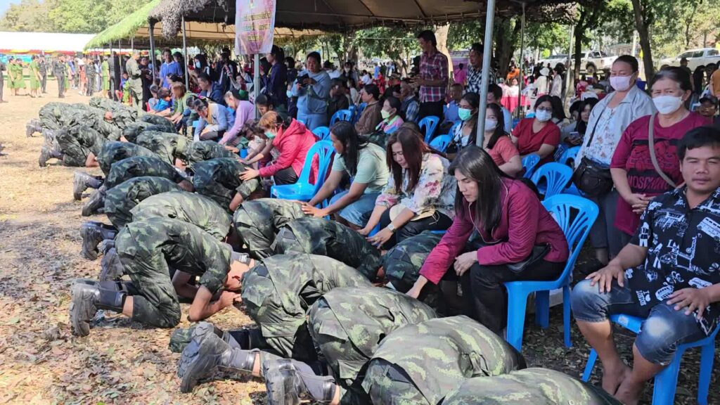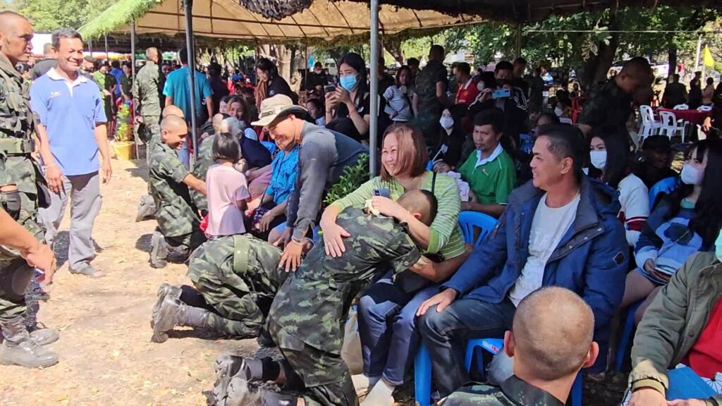ทั้งนี้ ผู้บัญชาการศูนย์การทหารปืนใหญ่ ยังได้นำญาติของน้องๆ ทหารใหม่ ทั้ง 6 หน่วยฝึก พร้อมด้วยพวงมาลัยดอกไม้ เข้าแสดงมุทิตาจิต ต่อ ผู้ปกครองและญาติทหารใหม่ ซึ่งบางคนถึงกับหลังน้ำตาด้วยความยินดี ที่ได้เจอกันครั้งแรกหลังเข้ามารับราชการทหาร โดยผู้บัญชาการศูนย์การทหารปืนใหญ่ ได้เดินพบปะทักทายกับญาติทหารใหม่ พร้อมให้คำมั่นว่า…กองทัพบกพร้อมดูแลบุตรหลายทุกคนเป็นอย่างดี เพราะทหารใหม่เป็นเสมือนน้องคนเล็กของกองทัพบก และ เราคือครอบครัวเดียวกัน