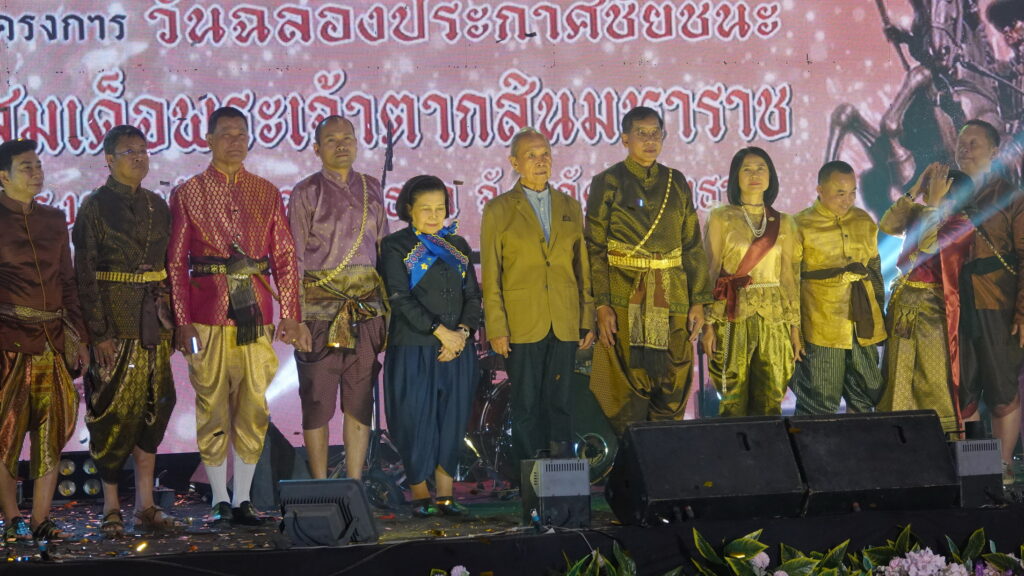 เมื่อเวลา 19.30 น. วันที่ 28 ธันวาคม 2566 วัดนางหยาด ทุ่งพญาเมือง (บริเวณโรงเรียนวัดป่างิ้วในปัจจุบัน) ตำบลบ้านงิ้ว อำเภอสามโคก จังหวัดปทุมธานี พลตำรวจโทคำรณวิทย์ ธูปกระจ่าง นายกองค์การบริหารส่วนจังหวัดปทุมธานี เป็นประธานพิธีเปิดโครงการวันฉลองประกาศชัยชนะสมเด็จพระเจ้าตากสินมหาราชทรงกอบกู้กรุงศรีอยุธยา จังหวัดปทุมธานี โดยมี พล.ต.อ ดร.ไกรสุข สินศุข อดีตรองผู้บัญชาการตำรวจแห่งชาติ ผู้สืบเชื้อสายจากสมเด็จพระเจ้าตากสินมหาราช , ร้อยตำรวจเอก ดร.ตรีลุพธ์ ธูปกระจ่าง นายกเทศมนตรีนครรังสิต , นายยุทธนา แสงพงศานนท์ ปลัดองค์การบริหารส่วนจังหวัดปทุมธานี พร้อมหัวหน้าส่วนราชการ นักเรียน และประชาชนชาวจังหวัดปทุมธานี เข้าร่วมพิธี